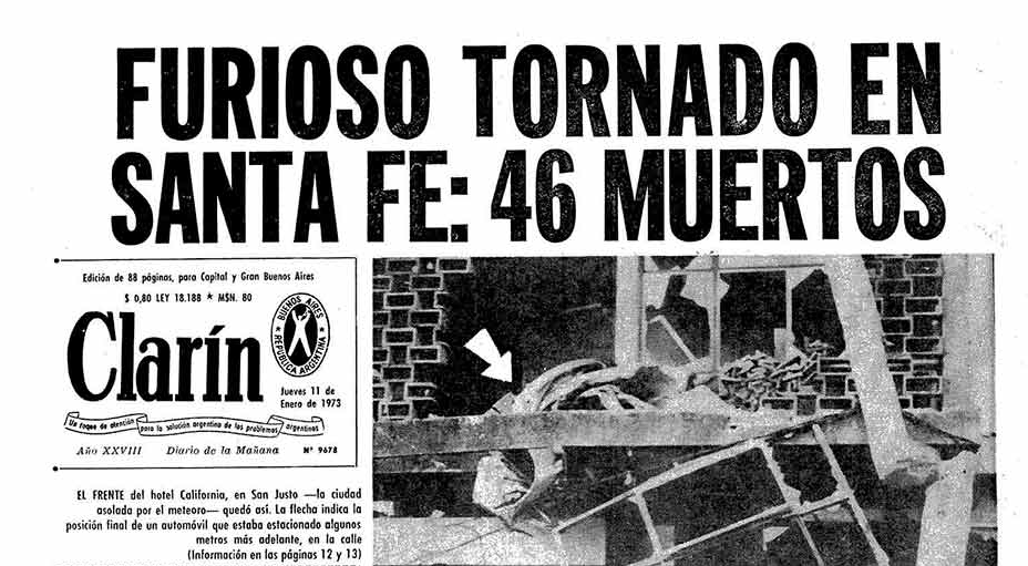 Il 10 gennaio del 1973 si verificava in Argentina, nella città di San Justo (provincia di Santa Fe), il tornado più forte mai registrato fuori dal territorio degli Stati Uniti d’America. Il tornado venne classificato come un F5 nella scala Fujita, il più forte in assoluto e causò oltre sessanta vittime.