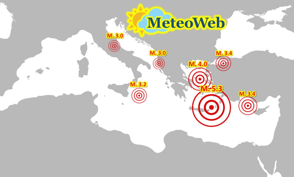 “Boom” di scosse di terremoto nel Mediterraneo Centro/Orientale, tra l’Italia, i Balcani e la Turchia, nelle ultime 18 ore. Dopo la forte scossa di magnitudo 5.3 che ieri sera ha colpito l’isola di Creta, nel Sud della Grecia, si sono verificate numerose scosse minori. La più forte è di poco fa, nel primo pomeriggio di oggi, sempre nel mar Egeo ma più a Nord, tra Grecia e Turchia: magnitudo 4.0. Ma nelle ore precedenti avevamo avuto diverse scosse, di magnitudo 3.4 intorno alla Turchia, di magnitudo 3.2 nel mar Jonio al largo della costa siciliana, e di magnitudo 3.0 in Albania e nell’Appennino centrale tra Abruzzo, Lazio, Marche e Umbria.