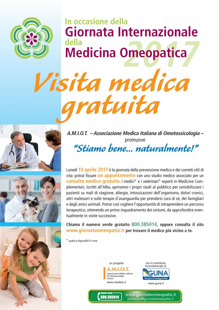 Lunedì 10 aprile si svolgerà “Stiamo bene… naturalmente!”, un’iniziativa promossa da A.M.I.O.T. – Associazione Medica Italiana di Omotossicologia – su tutto il territorio nazionale nell’ambito della Giornata Internazionale della Medicina Omeopatica.