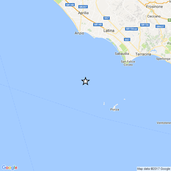 I terremoti delle scorse ore registrati nel Tirreno, al largo della costa laziale, hanno avuto epicentro a poche decine di chilometri dalle Isole Pontine. Gli eventi di maggiore magnitudo, 3.5 e 3.7, sono stati ben avvertiti a Ponza, dove secondo le segnalazioni pervenute al sito “Hai sentito il terremoto” sarebbe stato raggiunto il V grado MCS (i questionari pervenuti sono soltanto 8, quindi questo dato potrebbe essere non del tutto affidabile). Secondo EMSC l’intensità massima sarebbe invece del IV grado MCS.