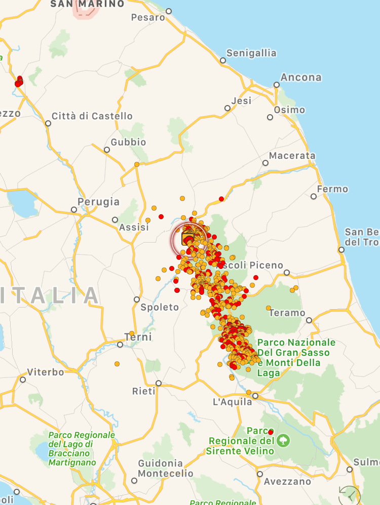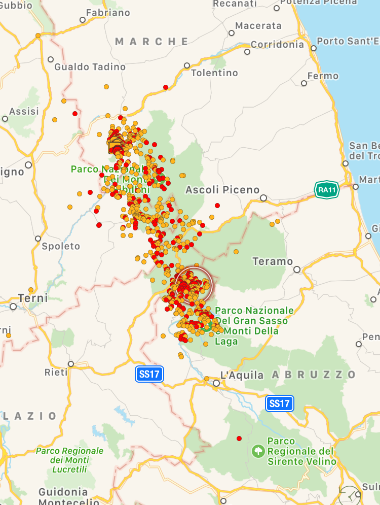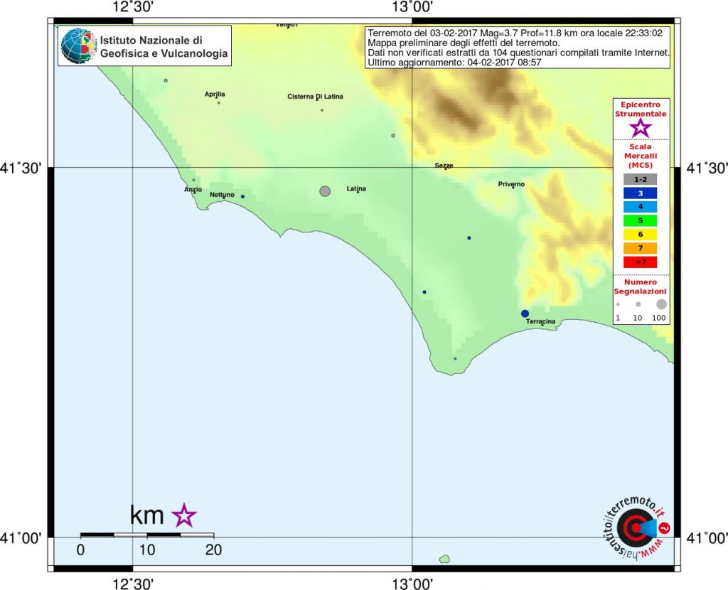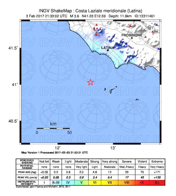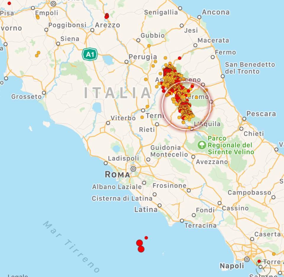 Le scosse principali si sono verificate in due aree: sull’Appennino centrale e sul litorale Laziale, con epicentro a ridosso dell’isola di Ponza dove le due scosse più forti (magnitudo 3.7 e magnitudo 3.5) hanno raggiunto il 5° grado Mercalli sull’isola, scatenando il panico con gente in fuga dalle proprie abitazioni. Tanta paura anche sulla costa e soprattutto a Terracina. Le scosse sono state avvertite distintamente a Latina, e sporadicamente anche nella zona Sud di Roma. Sull’Appennino centrale ancora scosse nella zona di Amatrice (magnitudo 3.7) e Pieve Torina (magnitudo 4.2). Da segnalare anche una scossa di magnitudo 3.2 nel basso Tirreno, al largo della Sicilia occidentale. Numerosissime le scosse minori.