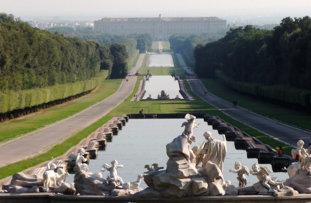 La signoria passò, poi, nelle mani della famiglia d’Aquino, agli Angioini, ai Sanseverino, ai Ribulsi, ai Della Ratta. Caterina della Ratta sposò prima Cesare d’Aragona, poi Matteo d’Acquaviva, dando inizio alla dinastia degli Aquaviva. Il principato fu venduto a Carlo di Borbone intorno al 1750, nel 1819 Caserta venne nominata capoluogo di provincia di Terra di lavoro, per poi essere soppressa nel 1927, ritornando capoluogo di provincia nel 1945. Garibaldi pose qui il suo quartier generale e la città fu sede, dal 1926 al 43’, dell’aeronautica Militare Italiana. Cosa visitare a Caserta? Il monumento più importante è la Reggia di Caserta o Palazzo Reale, splendido esempio di architettura neoclassica, realizzato nella metà del 1750 ma finito circa un secolo dopo, con lavori a firma dell’architetto Luigi Vanvitelli. La costruzione, voluta da Carlo di Borbone, conta 1200 stanze, tutte sfarzosamente decorate.