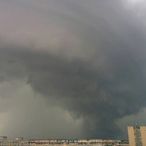 La presenza nella media troposfera di una moderata avvezione di vorticità positiva, in particolare fra la Romania, la Moldavia e l’ovest dell’Ucraina, ha in parte favorito l’innesco di significativi moti rotatori, all’interno delle nubi temporalesche. Alcuni di questi erano sufficientemente sviluppati, tanto da riuscire a far evolvere i temporali, seppur per pochissimo tempo, in sistemi di natura “supercellulare”, con lo sviluppo di uno o più “mesocicloni” (“updraft roteanti”) all’interno dei cumulonembi. Proprio attorno la serata di ieri uno di questi sistemi temporaleschi a mesoscala, grazie all’intenso “wind shear” in quota presente sulla verticale della Romania e dell’Ucraina occidentale, è riuscito a evolvere in una spettacolare “supercella temporalesca”, con tanto di imponenti nubi “mesocicloniche”, che si è spinta fino alle porte dell’area metropolitana di Bucarest, apportando sulle aree limitrofe forti rovesci di pioggia e grandinate accompagnate da attività elettrica e colpi di vento.