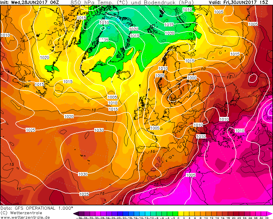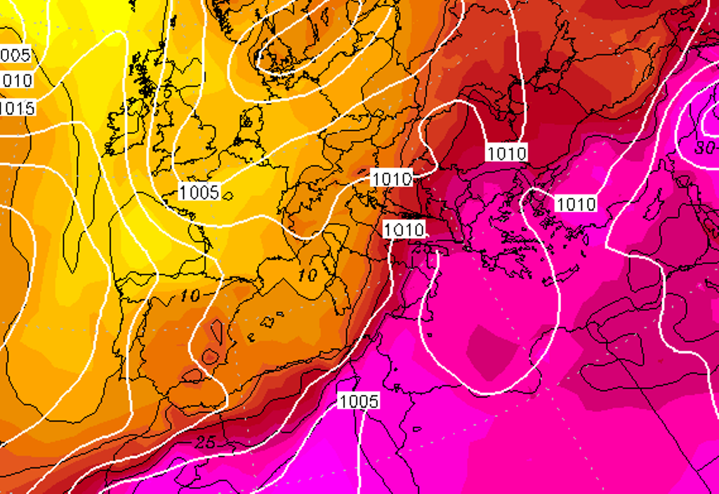 Si tratta di una configurazione piuttosto insolita, dettata dall’ulteriore abbassamento di latitudine del flusso perturbato principale, a cavallo dell’Europa centrale e dell’arco alpino. Lungo la linea di demarcazione fra le temperate correnti oceaniche, in scorrimento dal vicino Atlantico all’Europa centrale, e l’aria molto calda sub-tropicale continentale in risalita dall’Algeria al Mediterraneo centrale, si inspessirà il “gradiente termico orizzontale” e il “gradiente di geopotenziale” in quota, fattore che accelererà una rigenerazione delle correnti occidentali, al traverso dei 50° di latitudine nord. Il rinforzo delle correnti occidentali sull’Europa centrale imprimerà una considerevole rotazione verso est all’onda di calore in risalita dall’arroventato entroterra desertico algerino e tunisino.