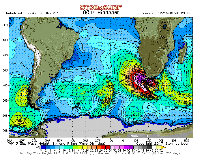 Le correnti da O-NO, in successiva rotazione da Ovest, hanno spazzato pure l’altopiano meridionale e i rilievi che contornano la costa meridionale del Sudafrica, con raffiche molto forti. I forti venti da O-NO e Ovest hanno anche generato consistenti mareggiate, con onde alte anche più di 7-8 metri, che dopo aver risalito l’Atlantico meridionale sono andate a rompersi con grande impeto sulle scogliere che caratterizzano il Capo di Buona Speranza, e l’area costiera a nord di Città del Capo fino alla baia di Sant’Elena.