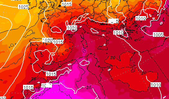 Sul bacino del Mediterraneo l’avvento delle classiche ondate di calore si delinea nell’erezione, verso nord o nord-est, di robusti anticicloni di blocco che dall’entroterra desertico del Marocco, dell’Algeria e della Libia si innalzano verso il “mare Nostrum”, venendo alimentati al proprio interno da un esteso flusso di aria calda e molto secca che viene aspirata direttamente dal Sahara centro-occidentale, più precisamente dall’area del Maghreb. In genere in queste situazioni l’aumento della “compressione adiabatica” generato dall’avvezione di spessore negli strati intermedi, le notevoli “Subsidenze atmosferiche” (correnti discendenti tipiche nelle aree anticicloniche), l’intensa insolazione e la scarsa umidità, inibita proprio dalla “compressione” verso il basso delle masse d’aria, già in origine piuttosto calde (aria sub-tropicale), comportano un sensibile aumento delle temperature che si riscontra soprattutto nei medi e bassi strati della troposfera.