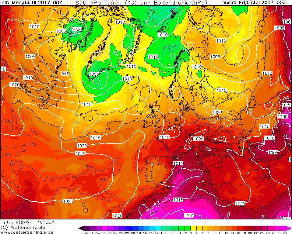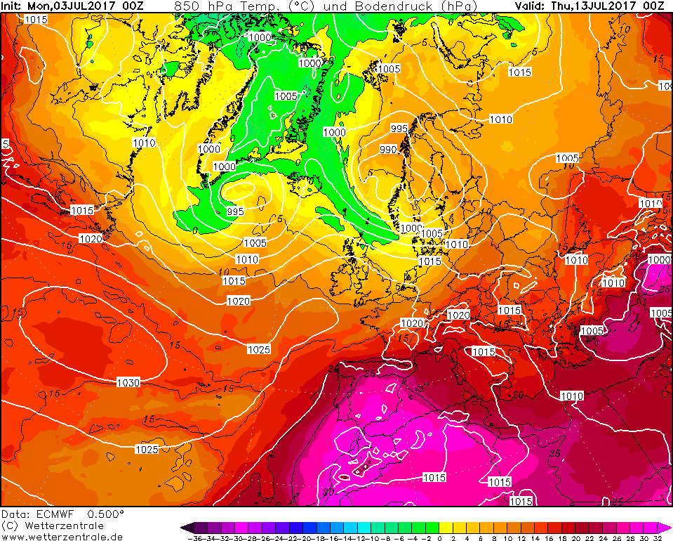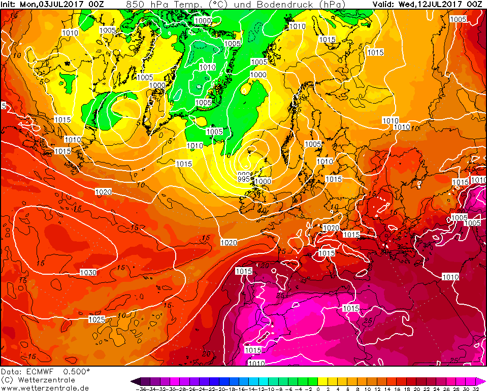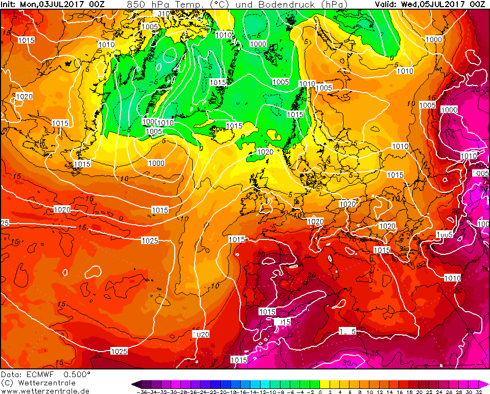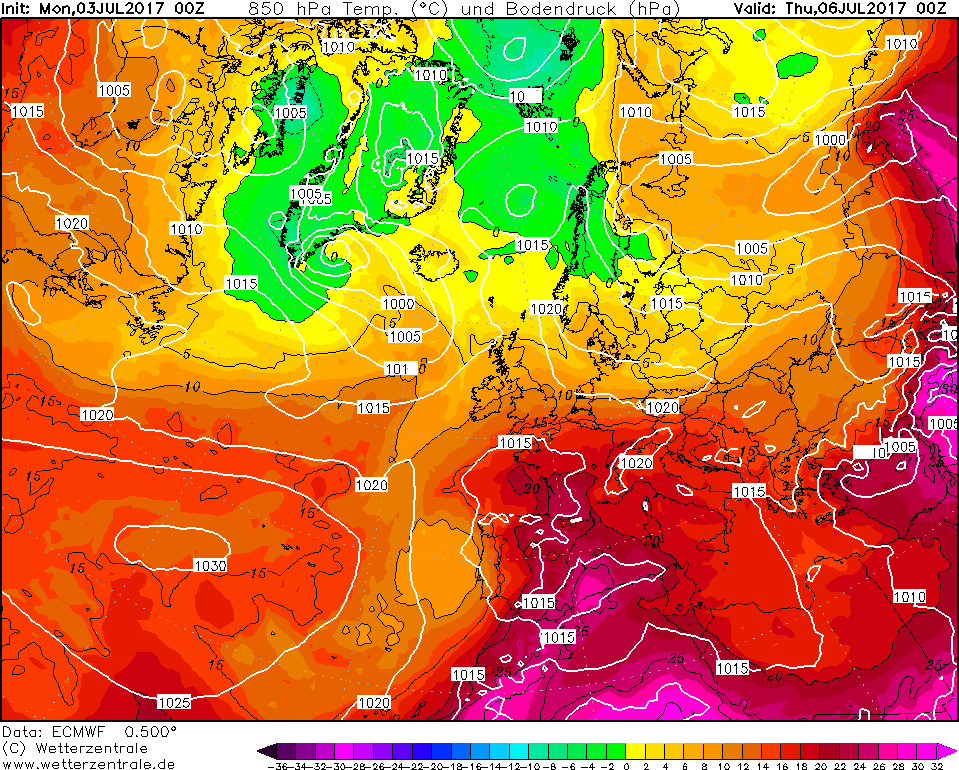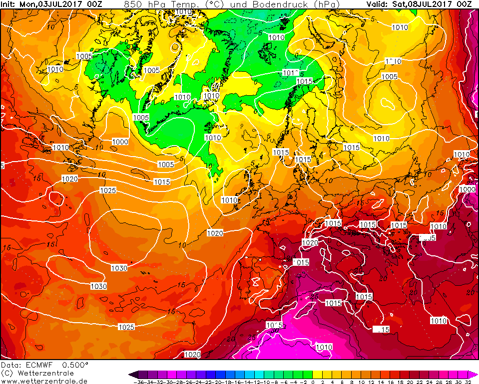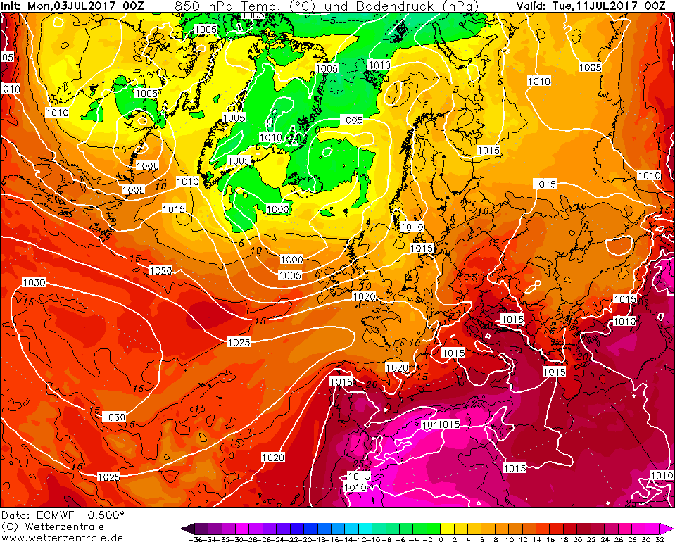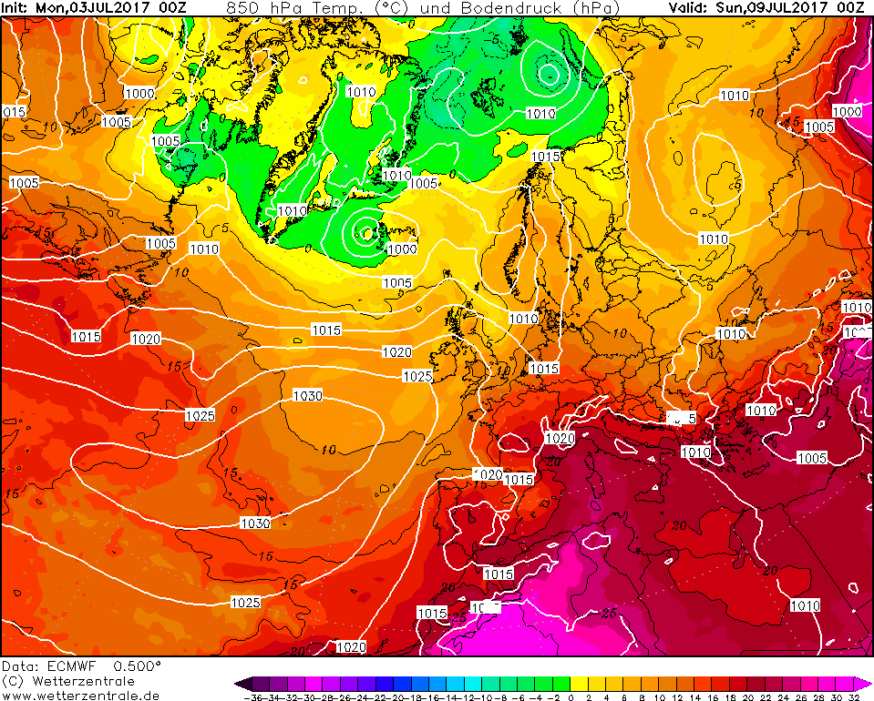 Le configurazioni adatte per l’innesco delle ondate di calore risultano molto frequenti fra la tarda primavera e l’estate e possono interessare anche l’Europa centro-settentrionale, con risentimenti fino alle latitudini sub-polari. Prima di concludere va sottolineato come l’ondata di calore pronta ad investire il nostro territorio nazionale dal prossimo weekend sarà decisamente più debole di quella che ci ha interessato la settimana scorsa, con picchi fino ad oltre i +43°C +44°C sulla Sicilia. Le temperature massime risulteranno un po’ più elevate sulle pianure e sulle vallate e conche interne, dove localmente si registreranno temperature massime di oltre i +34°C +35°C. Sempre entro il prossimo weekend il caldo comincerà ad avvertirsi anche sull’area alpina e su parte dell’Europa centrale, con temperature massime di oltre i +32°C +33°C.
