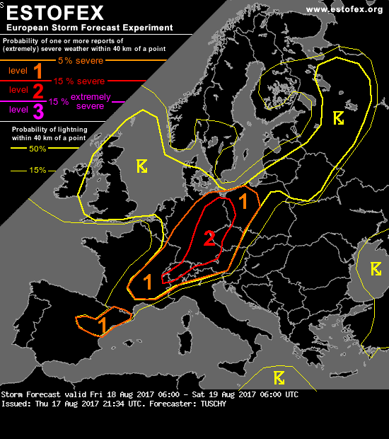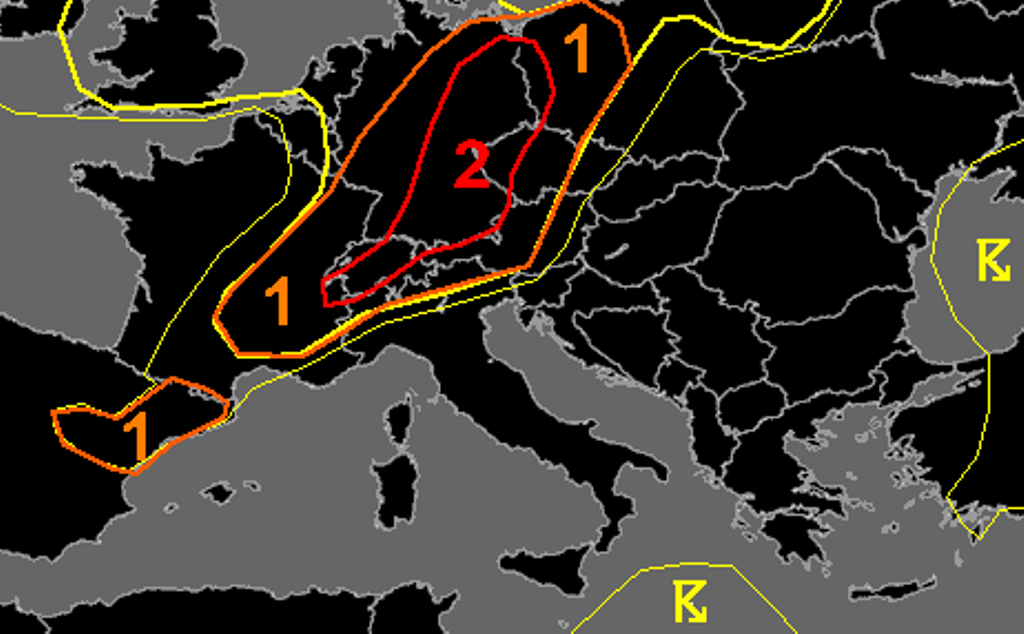 L’Italia, in particolare il Nord-Ovest, quindi Piemonte, Val d’Aosta, e Lombardia, si troveranno lungo la linea di confine al maltempo. Per questo motivo sono attenzionate da Estofex con un livello di criticità pari ad 1. Ma i temporali in serata colpiranno proprio l’area alpina della Lombardia, molto violentemente.