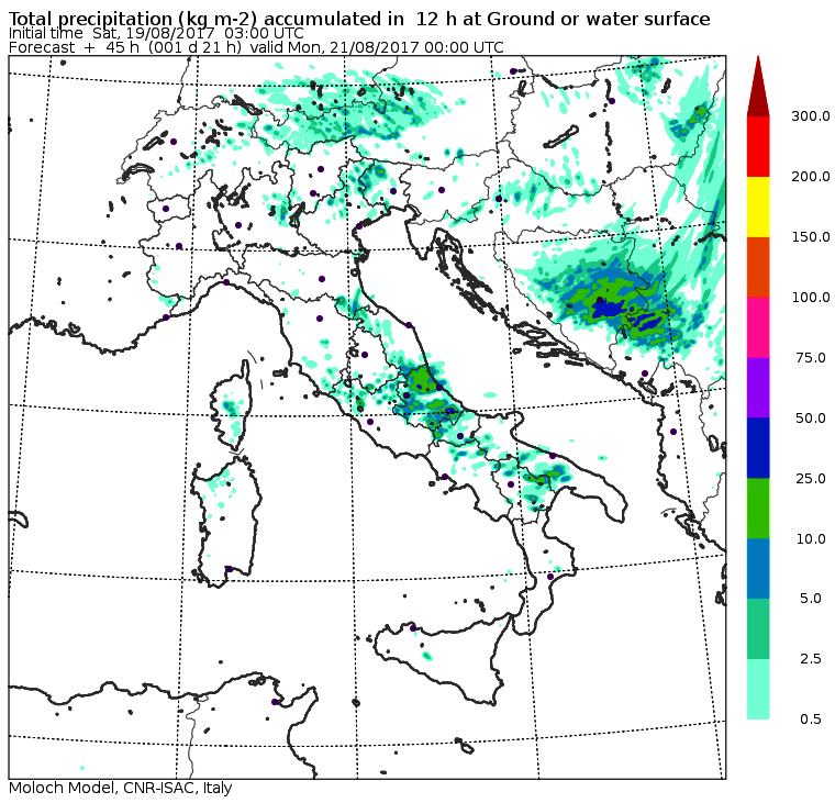 Ultimi fenomeni, lunedì 21 agosto al sud, su Calabria e Sicilia centro orientale, previsti dai modelli in forma un po’ blanda, ma sulla cui effettiva entità riteniamo sia necessario attendere ulteriori verifiche.