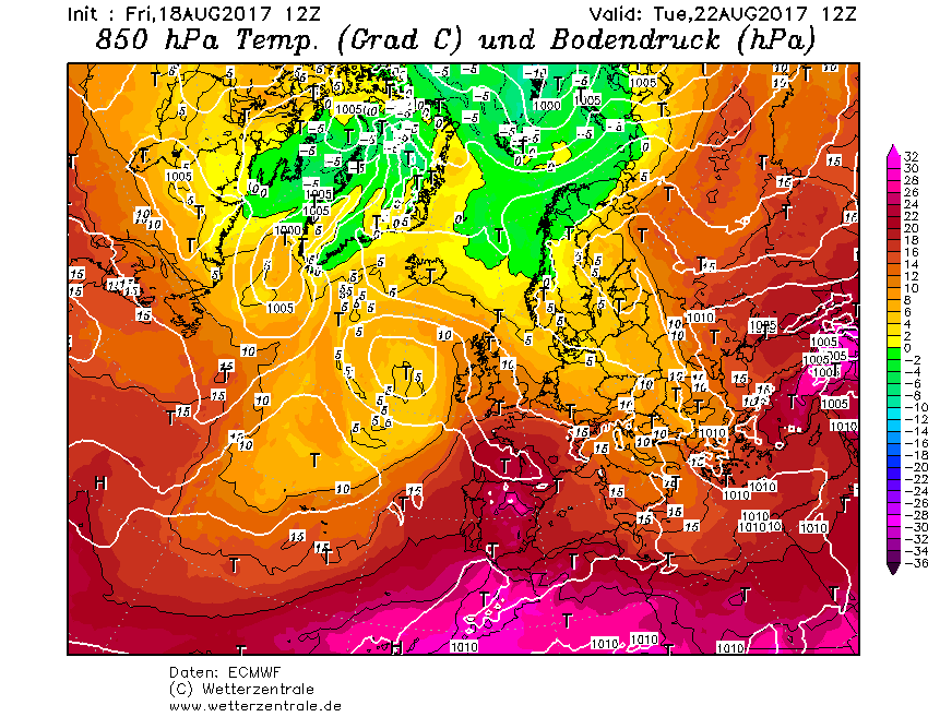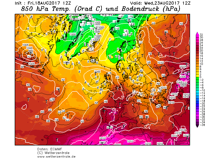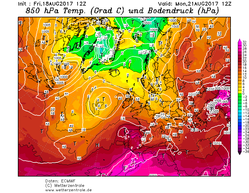 Tutto è legato all’ingresso di una goccia fredda in quota, la cui traiettoria, ben descritta dalle mappe ad 850 hPa di ECMWF allegate, segnerà la distribuzione dei fenomeni temporaleschi previsti localmente ancora, dopo quelli di ieri al Nord/Ovest, assai intensi.