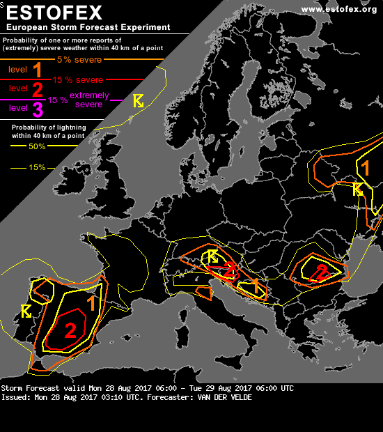 La fase di maltempo toccherà l’Italia di striscio, coinvolgendola per il suo settore nord/orientale. Ecco quindi emesso un ulteriore Alert di Estofex anche per Trentino Alto Adige, Veneto e Friuli Venezia Giulia. La criticità attesa rimane la stessa dei territori sloveni e croati: i rischi sono dati dall’arrivo di forti temporali localizzati anche in aree ristrette, accompagnati da forti raffiche di vento e grandine. Sono i primi segnali evidenti dei grossi cambiamenti in arrivo sul Mediterraneo centrale in vista dell’autunno meteorologico. Ecco le pagine utili per seguire la situazione meteo in tempo reale: