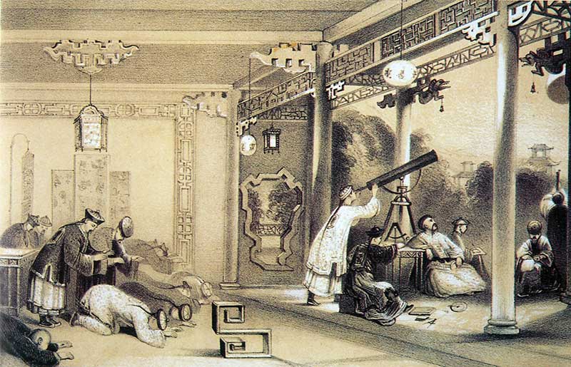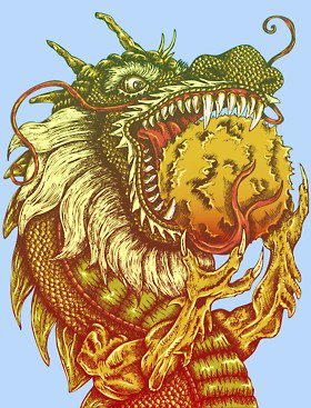 IL DRAGO CHE DIVORA IL SOLE – Nella storia molti popoli hanno immaginato un pasto celeste, draghi e demoni che divorano il sole. Nell’antichita’ i cinesi cercavano di spaventare il drago facendo rumore, suonando tamburi, scoccando frecce nell’aria e percuotendo delle pentole, tradizione durata fino al solo scorso quando la Marina imperiale cinese usava ancora sparare con le armi da cerimonia durante l’oscuramento del sole per scacciare simbolicamente il drago invisibile. Per i cinesi la parole per l’Eclissi e Shih che significa mangiare. In India la gente si immergeva fino al ginocchio nell’acqua di un fiume credendo che questo aiutasse la Luna e il Sole a difendersi dal drago. In Giappone si usava ricoprire i pozzi durante l’Eclissi per evitare che vi cadesse del veleno proveniente dal cielo oscuro. In Vietnam era una rana o un rospo a divorare il Sole mentre secondo i nativi Kwatiuti della costa occidentale del Canada sarebbe la bocca del Paradiso a consumarlo.