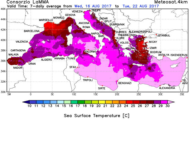 Il Mediterraneo centrale è molto più caldo del solito: i valori di +30° del Tirreno meridionale ed i +29° dello Jonio ne sono una chiara, e constatabile facilmente da tutti, evidenza.