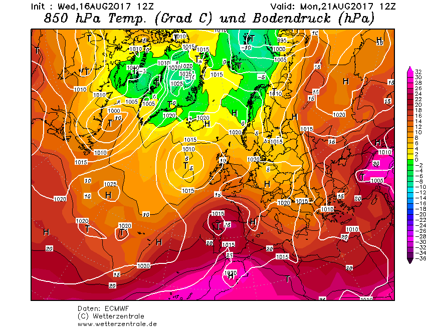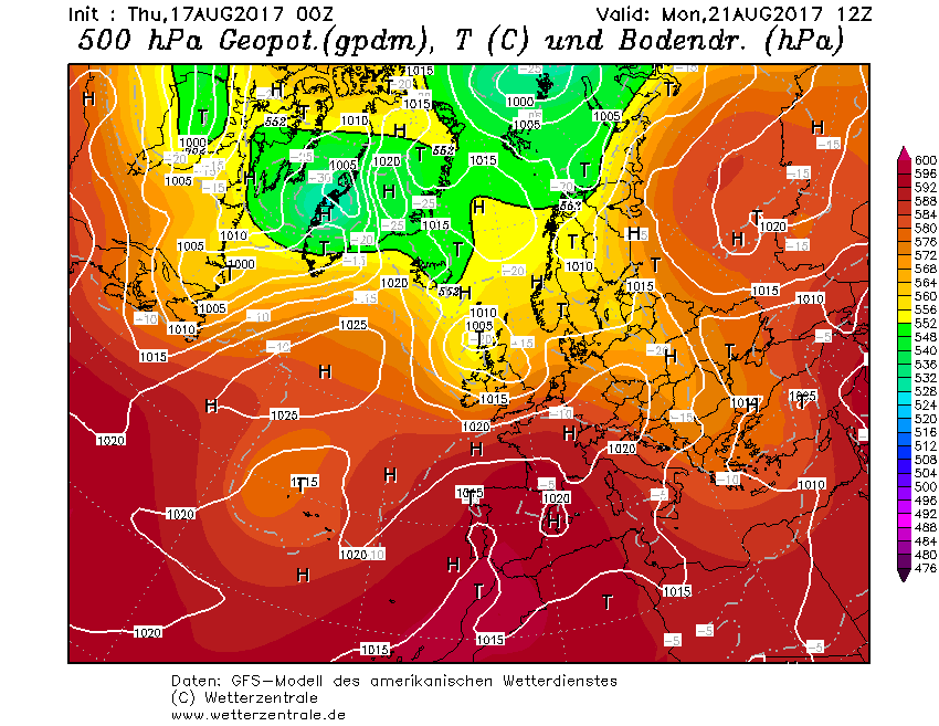 Il motivo del contendere è il posizionamento dell’area di bassa pressione con annesso nucleo freddo in quota, previsto per la giornata del 20 agosto 2017.
