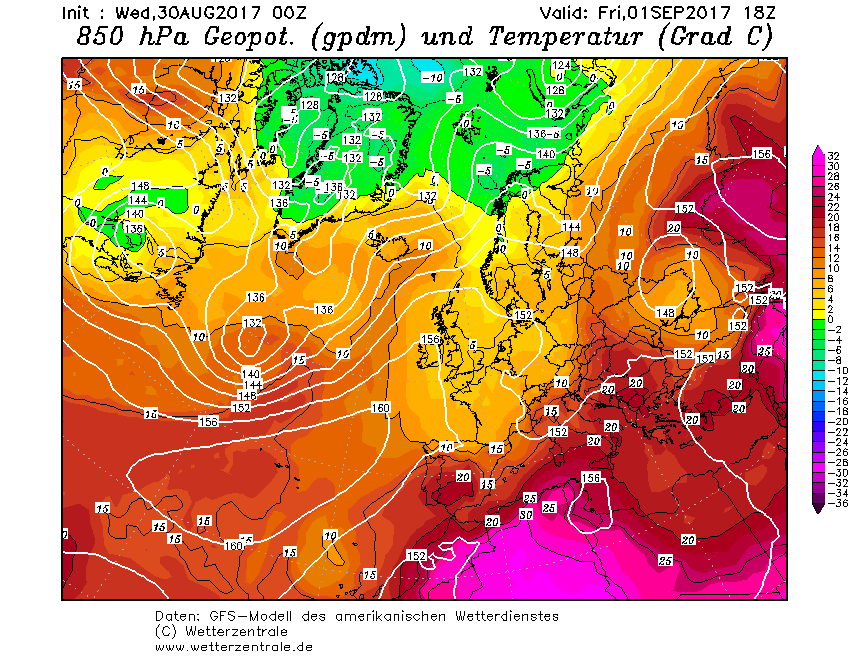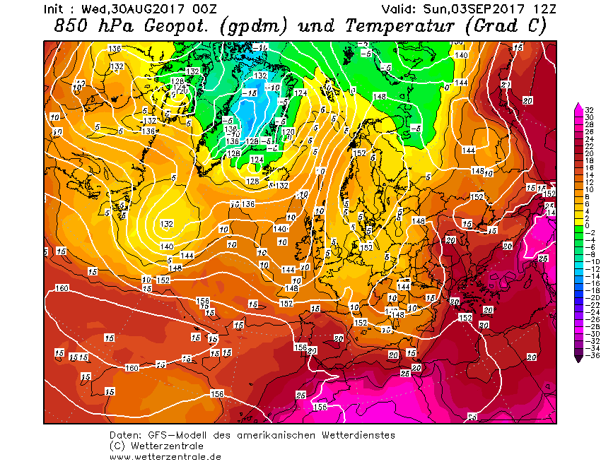 Il Nord ed il Centro, tra venerdì, sabato e domenica, vedranno precipitazioni a tratti anche intense, il Sud invece vedrà non solo i fenomeni in ritardo, ma sarà sovrastato fino a domenica 3 settembre da una isoterma ai 1500 metri di +20°, il che significherà temperature ancora largamente superiori ai +35°C, con picchi di +40°C nelle zone interne.