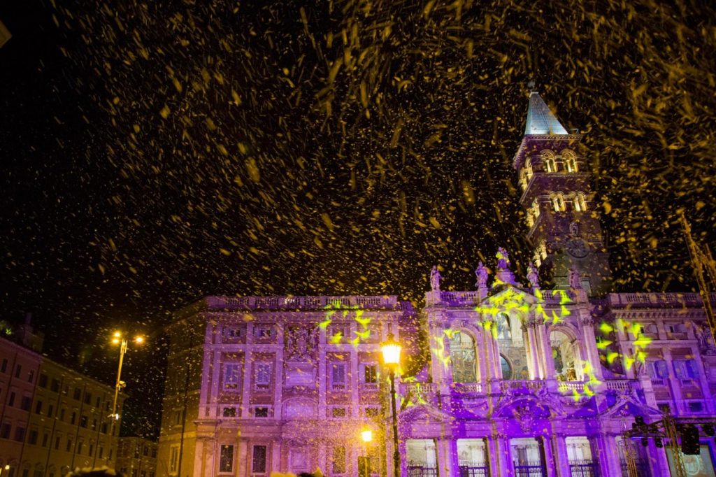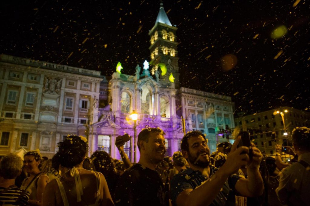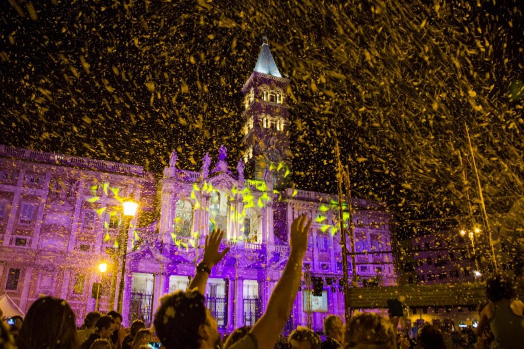 Oggi, 5 agosto 2017, si tiene la 34ª edizione dello spettacolo di rievocazione ideato nel 1983 dall’architetto Cesare Esposito in ricordo di una tradizione devozionale molto cara ai romani: avrà luogo infatti la rievocazione storica del miracolo della Madonna della Neve. Secondo la tradizione, la notte tra il 4 ed il 5 agosto del 352 d. C. la Madonna apparve in sogno a un nobile patrizio e alla moglie, che non avendo figli, avevano deciso di far edificare una chiesa in suo nome e disse loro che un miracolo gli avrebbe indicato il luogo su cui costruirla. Anche papa Liberio fece lo stesso sogno e il giorno seguente, recatosi sull’Esquilino, lo trovò coperto di neve. Il Papa tracciò il perimetro dell’edificio e la chiesa fu costruita a spese dei due coniugi, divenendo nota come chiesa di Santa Maria ‘Liberiana’ o popolarmente ‘ad Nives’.