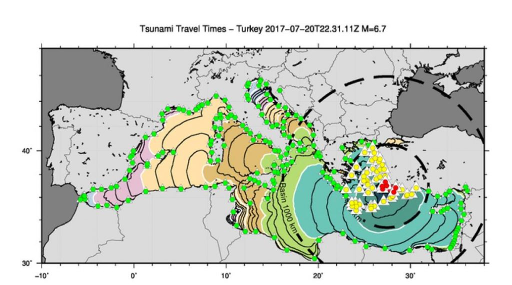 Nello specifico, il Centro Allerta Tsunami di INGV – che opera 7 giorni su 7, h24 – valuta la possibilità che un determinato terremoto, con epicentro in mare o nelle immediate vicinanze, possa generare uno tsunami e stima i tempi di arrivo attesi lungo le coste esposte. È invece compito del Dipartimento della protezione civile, sulla base delle valutazioni del CAT, diffondere i messaggi di allertamento alle strutture e componenti del servizio nazionale della protezione civile per raggiungere, nel minor tempo possibile, la popolazione potenzialmente interessata. I dati forniti dalla rete mareografica nazionale gestita dall’ISPRA e dei mareografi presenti lungo le coste di altri paesi del Mediterraneo consentono, infine, di confermare o meno l’eventuale maremoto.
