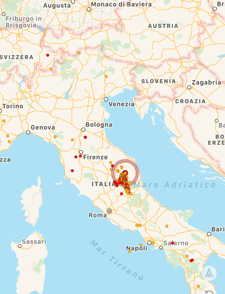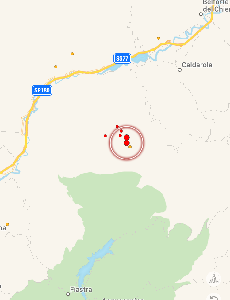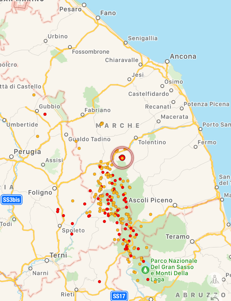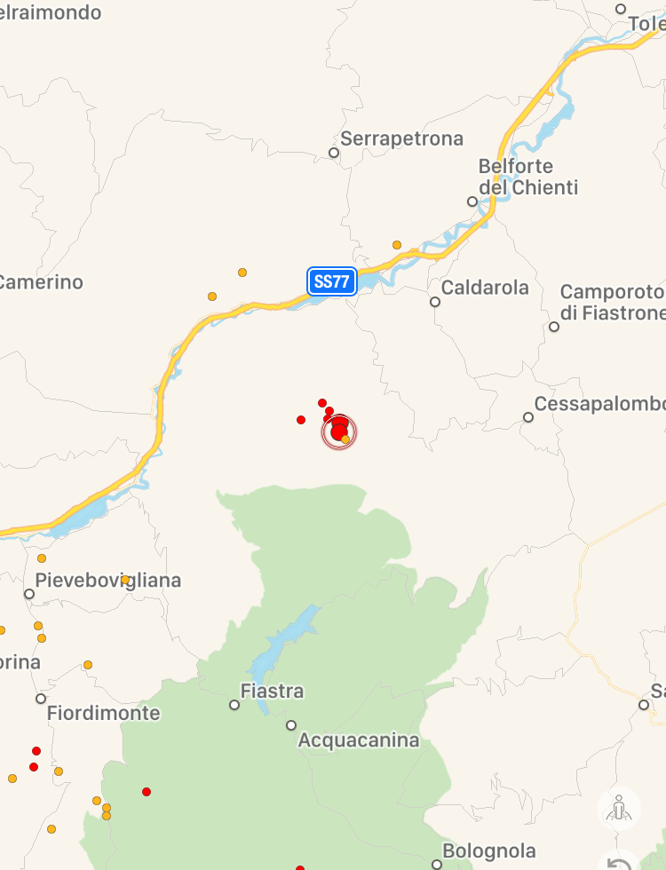 Ancora un terremoto nel cuore dell’Appennino, con epicentro a Caldarola, nelle Marche in provincia di Macerata, dove già stamattina avevamo avuto una scossa di Magnitudo 3.3. L’ultima scossa, di pochi minuti fa (ore 17:32) è stata ancora più forte: Magnitudo 3.5, a 8.8km di profondità. Siamo nella zona nord/orientale del grande sciame sismico degli ultimi mesi. La scossa è stata avvertita in gran parte del territorio marchigiano, da Camerino a Fabriano, da San Severino Marche a Tolentino, da Mogliano a Gualdo Tadino, da Montegiorgio a Corridonia e Matelica fino a Macerata e Pollenza.