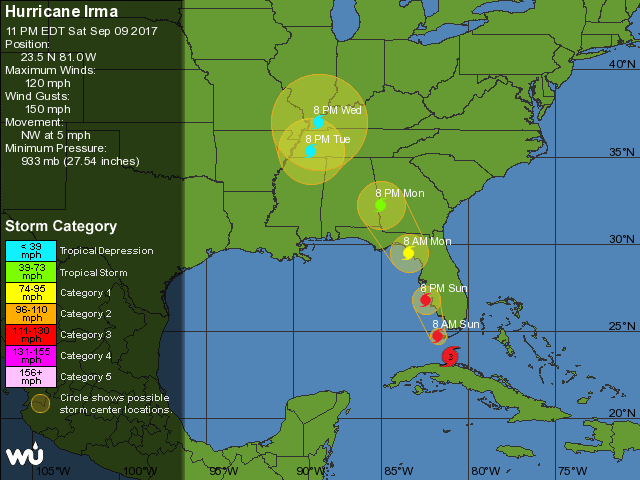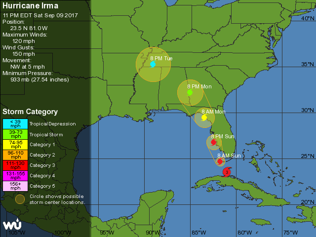 L’uragano Irma sta percorrendo il tragitto annunciato verso la Florida: il primo impatto dovrebbe avvenire all’altezza della costa orientale dello Stato e poi dovrebbe portarsi verso la regione di Tampa Bay nella giornata di domani. “Sta appena cominciando ad accadere“, ha spiegato il meteorologo Dennis Feltgen del National Hurricane Center secondo la Associated Press, “il centro ha lasciato la costa cubana e si sta dirigendo verso le acque della Florida“, mentre sta anche mostrando i primi segnali di un intensificazione. L’uragano è infatti classificato al momento di 3ª categoria, con venti a 205 km all’ora, ma è previsto un rafforzamento.