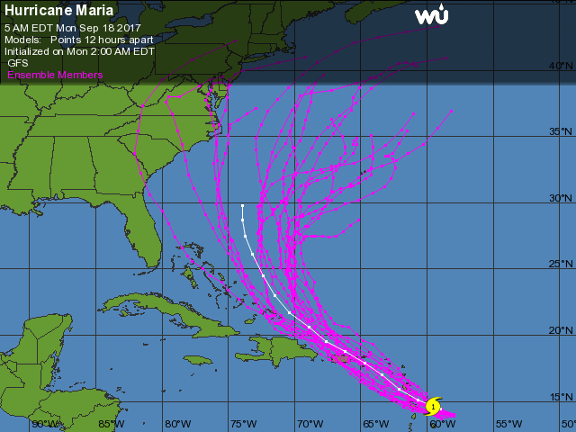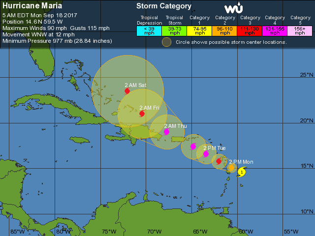 Maria ha raggiunto ieri la 1ª categoria e secondo il National Hurricane Center dovrebbe raggiungere la 4ª categoria, su una scala che ne prevede cinque.