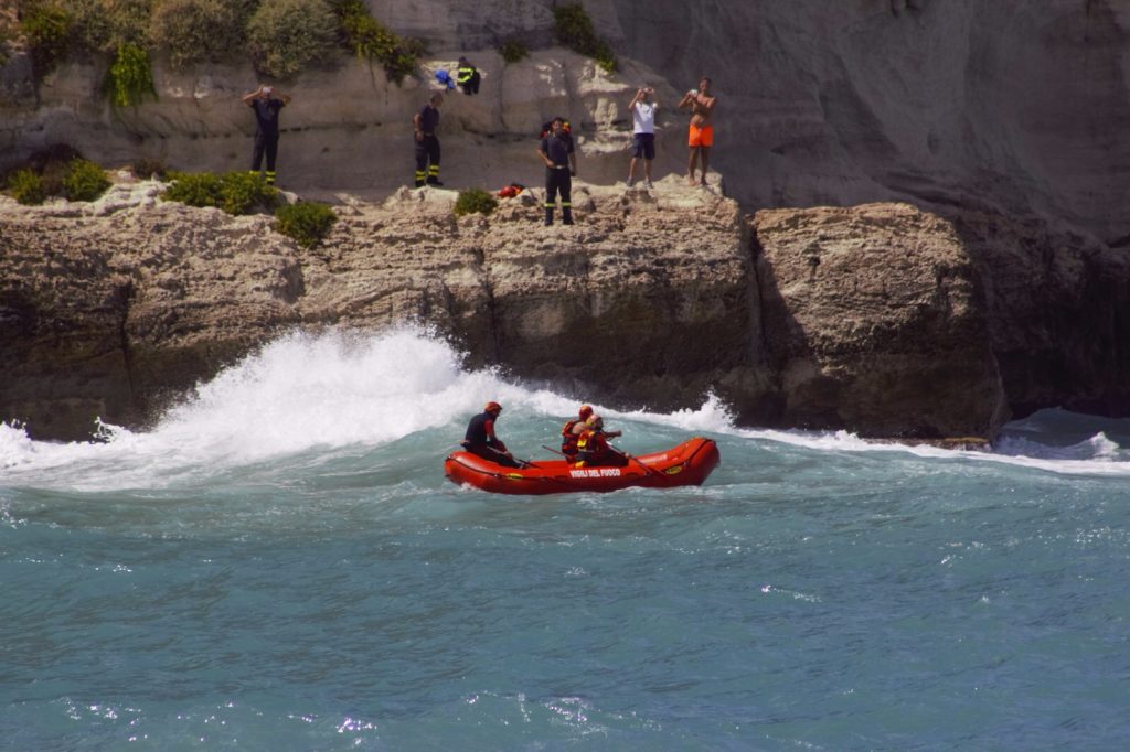 A causa del forte maltempo delle scorse ore, una coppia di turisti stranieri è rimasta bloccata nella notte dentro la grotta della chiesa di Santa Maria dell’Isola. Da ieri sera, infatti, forti temporali stanno colpendo la Calabria tirrenica (come ampiamente annunciato dalle previsioni), e stamattina anche un grosso tornado ha attraversato le acque appena al largo di Tropea. Il mare è diventato improvvisamente grosso e i due turisti non sono più riusciti a tornare indietro, dopo aver raggiunto la suggestiva grotta nella serata di ieri. I Vigili del Fuoco sono dovuti intervenire con grande mobilitazione di uomini e mezzi per soccorrere i due turisti, che avevano raggiunto la grotta nella notte. I soccorritori hanno tentato un salvataggio con l’elicottero, ma il forte vento l’ha reso impossibile, quindi si sono organizzati calandosi con le corde dalla scogliera.