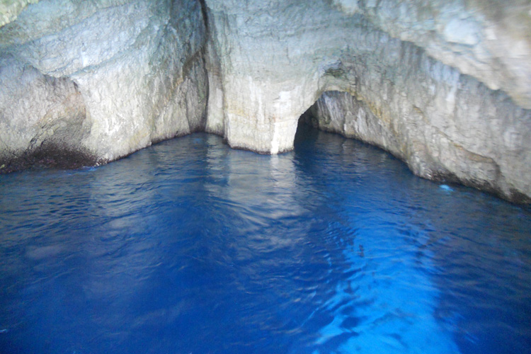 Queste particolari formazioni geologiche, che devono il loro nome ai particolari riflessi blu che l’acqua assume al loro interno, si susseguono lungo la costa nord-ovest dell’isola, iniziando subito dopo Agios Nikolaos per poi terminare in prossimità di Capo Skinari, creando scenari suggestivi, da cartolina. In molte grotte è possibile addentrarsi con una piccola o media imbarcazione, mentre la scoperta delle altre è riservata solo a nuotatori esperti e ai sub. I tour in barca per visitare le grotte partono dalla spiaggia di Makris Gialos, da Aghios Nikolaos e da Capo Skinari.