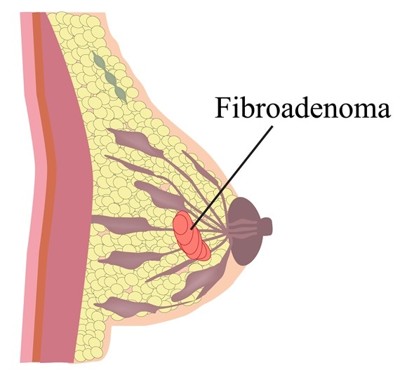 Il fibroadenoma al seno è il tumore benigno della mammella più diffuso. Nonostante non si conoscano ancora le cause, tra i fattori di rischio troviamo: età (colpisce soprattutto le giovani donne sotto i 30 anni), fattori ormonali (terapia ormonale sostitutiva, pillola anticoncezionale, gravidanza), ereditarietà, fattori costituzionali (seno policistico). Indolore, ha i seguenti caratteri al tatto: forma simile a una biglia o a un nodulo, gommosa o dura, non produce dolore alla pressione, ha dimensioni variabili tra o,5 e 2 cm. Per una corretta diagnosi, dopo la palpazione, è necessario effettuare i seguenti esami strumentali: ecografia, mammografia, ago aspirato, biopsia. Il medico difficilmente decide di rimuovere un fibroadenoma semplice e di dimensioni ridotte in quanto è quasi impossibile che esso possa degenerare in tumore maligno.