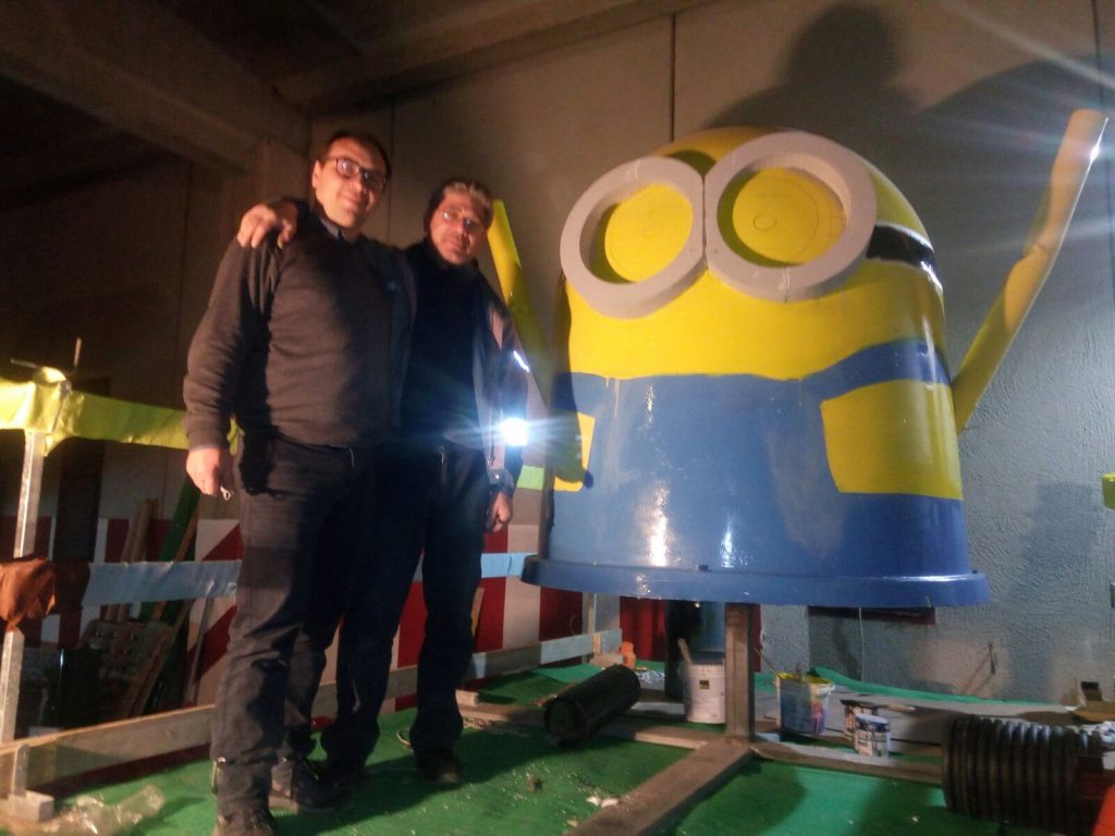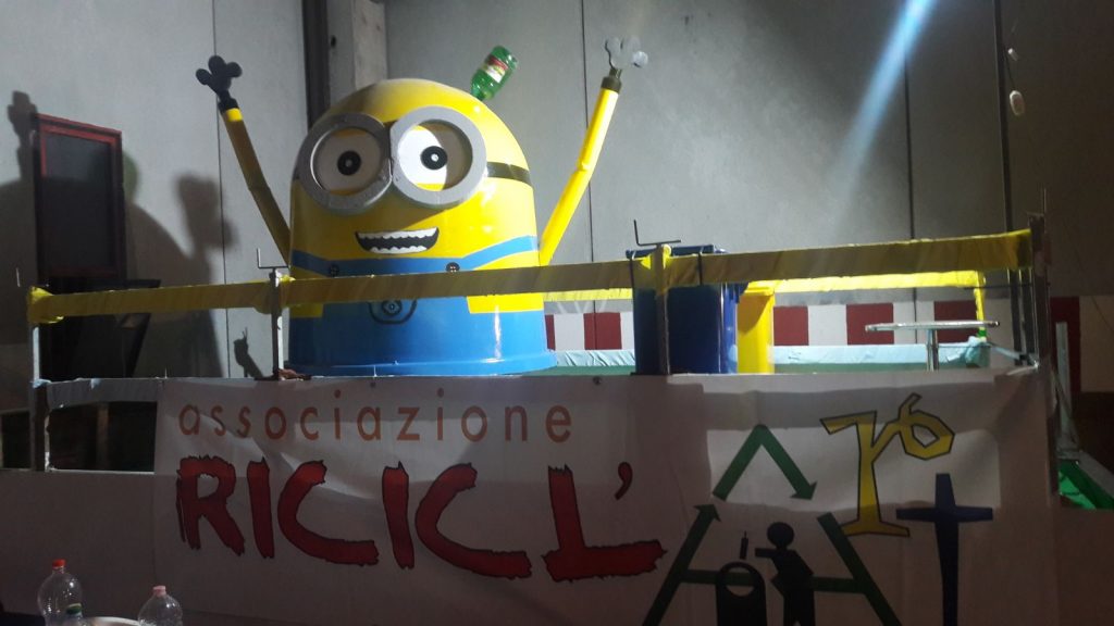 Il Minion gigante e la Carretta Va…lentina, realizzati dal socio Gennaro Pulignano con il supporto di Franco Sapia, sono il frutto di una sapiente maestria unita alla creatività e al rispetto dell’ambiente. Una vecchia campana per la raccolta del vetro e alcuni CD sono stati trasformati in un simpatico Minion gigante, mentre la Carretta Va…lentina è stata realizzata assemblando tubi per impalcature, una vecchia carriola, parti di una bicicletta e altri oggetti e materiali riciclati.