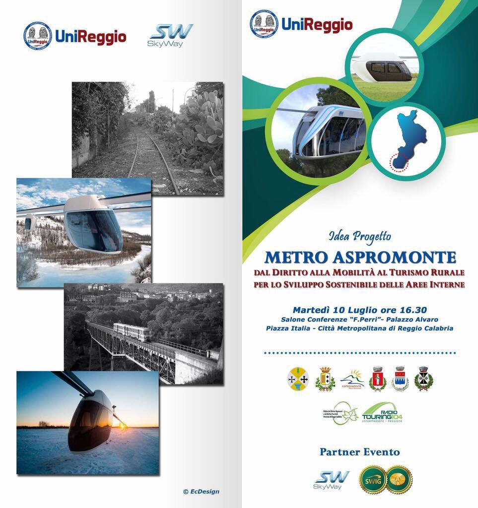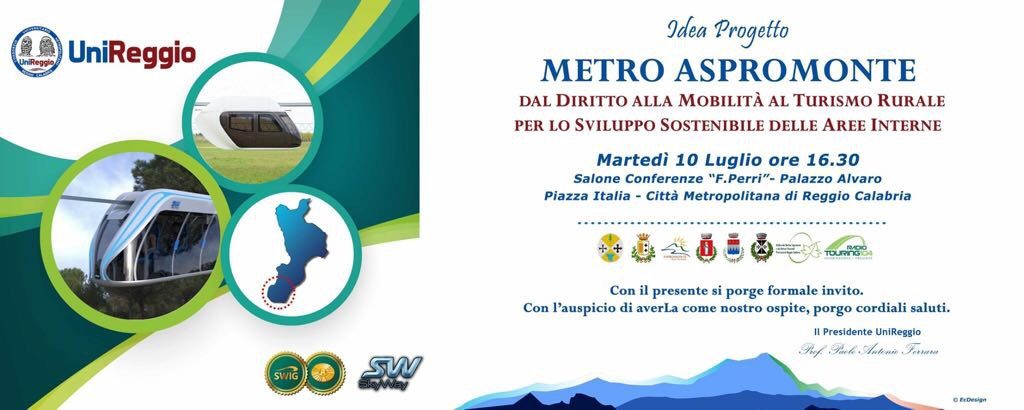Paolo Ferrara, Presidente di UniReggio, ha spiegato che “La concretizzazione dell’idea progetto Metro Aspromonte è da considerarsi principalmente come grande opportunità di ridare il “diritto alla mobilità” all’intera area aspromontana fortemente danneggiata dalla chiusura del vecchio svincolo autostradale “Sant’Eufemia/Bagnara” e, nel contempo, concretizzare la reale occasione di costruire in Italia la prima tratta del più innovativo sistema di trasporto a stringa con tecnologia Sky Way. Metro Aspromonte, che ha l’ambiziosa volontà di collegare la montagna al mare, vuole concretizzarsi attraverso la realizzazione del progetto pilota che prevede il recupero di una porzione della vecchia linea ferroviaria Calabro-Lucana, dismessa da anni, che collega molti Comuni dell’Area Interna della Città Metropolitana di Reggio Calabria. L’idea progetto potrebbe ulteriormente essere rafforzata mediante azioni volte a incentivare il turismo rurale con il recupero della strada ferrata e le sue vecchie stazioni attraverso la realizzazione di un percorso enogastronomico per la valorizzazione delle eccellenze agroalimentari calabresi”.