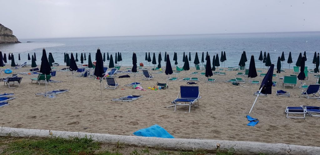 Nel primo pomeriggio di oggi un violento nubifragio ha colpito Tropea, dopo che la mattinata era stata splendida, soleggiata e mite con tantissima gente in spiaggia (vedi foto nella gallery). Ma nel primo pomeriggio s’è scatenato un furioso temporale: 20 minuti di vento intenso e pioggia torrenziale, con danni ingenti agli stabilimenti balneari in spiaggia dove lettini e ombrelloni sono stati distrutti e in alcuni casi trascinati al largo in mare aperto. Un brusco stop dell’estate nella Perla del Tirreno ancora gremita di turisti e vacanzieri.
