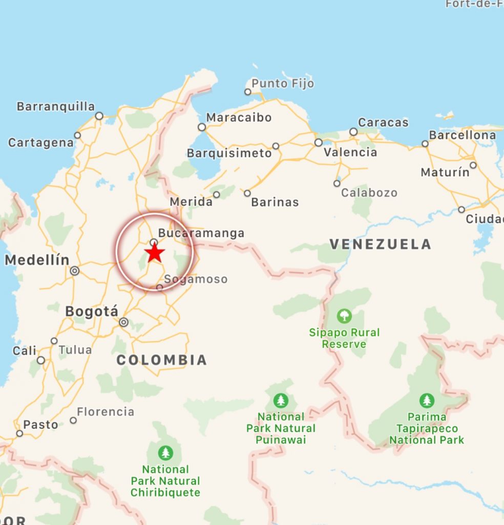 Una fortissima scossa di terremoto è stata registrata poco fa in Colombia. La scossa, secondo una stima preliminare, risulta essere stata di magnitudo 5.7 ed è stata registrata alle ore 17:53 (ora italiana).