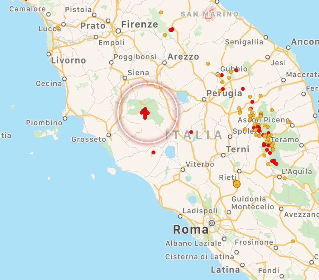 Abbiamo cercato di capire, con il professor Antonio Moretti, docente dell’Università degli Studi dell’Aquila, se ci siano connessioni tra i diversi episodi. “Queste ultime scosse sono nella medesima posizione delle altre – ha spiegato l’esperto –, ovvero sul lato tirrenico dell’Appennino, ai margini della provincia. Storicamente la zona di Siena fu interessata da alcuni terremoti, tra cui uno degno di nota che l’ha distrutta nel 2017 a.C., e che ebbe una magnitudo di decimo grado della scala Mercalli. Ma da allora non si è verificato più nulla di significativo, o almeno per quanto ne sappiamo, solo piccoli terremoti dei quali non sappiamo molto: essendo statisticamente pochi non sono stati indagati a fondo. Come è noto, e come è possibile vedere sul sito INGV, la microsimicità di quell’area è bassa, e inoltre abbiamo dati attendibili solo in epoca recente”.