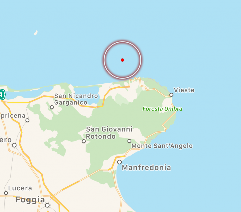 Nella notte alle ore 00:12 una scossa di terremoto di magnitudo 2.9 ad appena 5km di profondità ha colpito il mare Adriatico a pochi chilometri dal litorale garganico, a Nord di Peschici e Rodi Garganico. La scossa è stata avvertita nel Gargano: paura a San Giovanni Rotondo, Monte Sant’Angelo e Vieste. Al momento non sono segnalati danni.