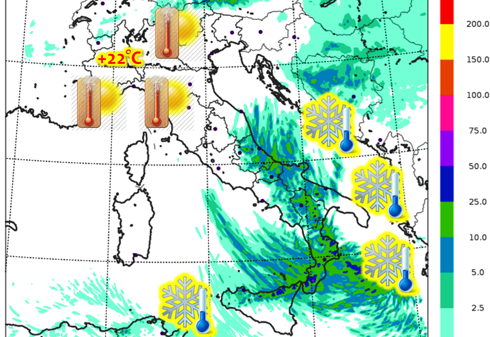 Al Nord, invece, continuerà a splendere il sole con temperature eccezionalmente miti per il periodo: l’Anticiclone è troppo forte e continuerà a garantire bel tempo con valori fino a +20°C in modo particolare tra Valle d’Aosta, Piemonte, Lombardia e Liguria.
