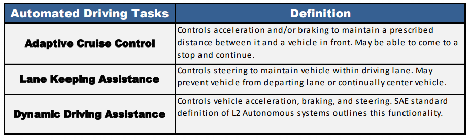 Per questi motivi l’AAA propone quindi la suddivisione in 5 macro-categorie ben definite, in quanto in ogni veicolo e per ogni costruttore sono presenti sistemi di assistenza simili che utilizzano però metodi, sensori e hardware diversi.