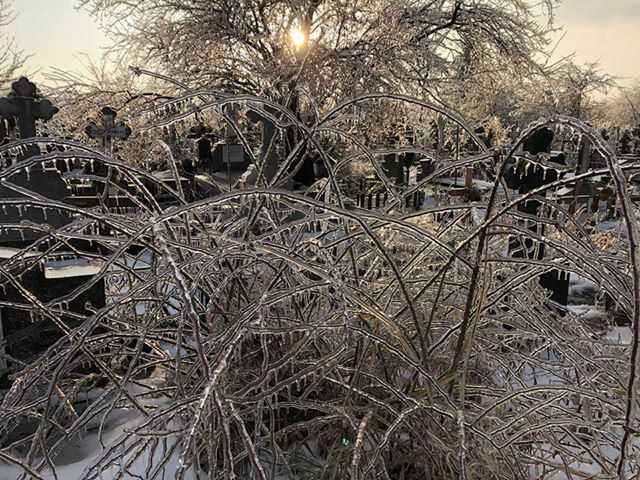 Anche la nebbia congelata ricopre tutto con uno strato di ghiaccio, ma solitamente le quantità sono inferiori, quindi i risultati non raggiungono la stessa gravità di quelli della pioggia congelata.