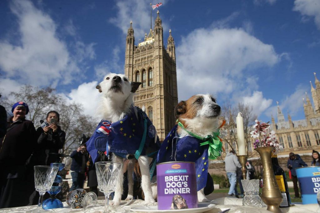 Inizia domani la settimana decisiva per la Brexit. I deputati britannici voteranno martedì per concretizzare o rinviare il divorzio dall’Unione europea, la cui data è fissata al 29 marzo. Il voto arriva tre anni dopo il referendum popolare e meno di tre settimane prima del giorno della separazione. Discussioni tecniche e politiche proseguono a Bruxelles, dove i britannici chiedono modifiche all’accordo sul ritiro raggiunto a novembre. Il testo è stato bocciato dal Parlamento di Londra il 15 gennaio e da allora la premier Theresa May si è impegnata in una battaglia su due fronti: per tentare di ottenere concessioni dall’Ue e per far sì che i deputati britannici diano l’ok. In questa corsa contro il tempo, la conservatrice si è scontrata con il rifiuto europeo di riaprire i negoziati. Sulla base di riunioni di lavoro in corso a Bruxelles nel fine settimana, lunedì potrebbe tornarvi per ultime trattative. Martedì, in ogni caso, sarà alla Camera del comuni perché l’accordo sarà di nuovo sottoposto al voto dei deputati. La sua adozione darebbe al Regno Unito un’uscita ordinata, 46 anni dopo l’ingresso nel blocco. “Abbiamo un’opportunità di uscire il 29 marzo, è molto importante coglierla”, ha detto il ministro degli Esteri britannico, Jeremy Hunt, chiedendo di appoggiare l’intesa. Se la Brexit non sarà attuata, ha detto, le conseguenze saranno “devastanti”. E oggi, intanto, a Londra persino i cani hanno manifestato contro la Brexit fuori dalle Camere del Parlamento durante una manifestazione anti Brexit chiamata “Wooferendum”. I manifestanti (umani) hanno etichettato la Brexit come una “cena per cani” e hanno chiesto di fermarla.