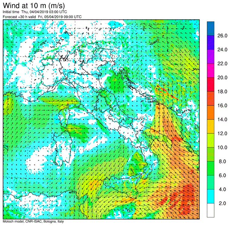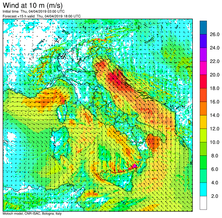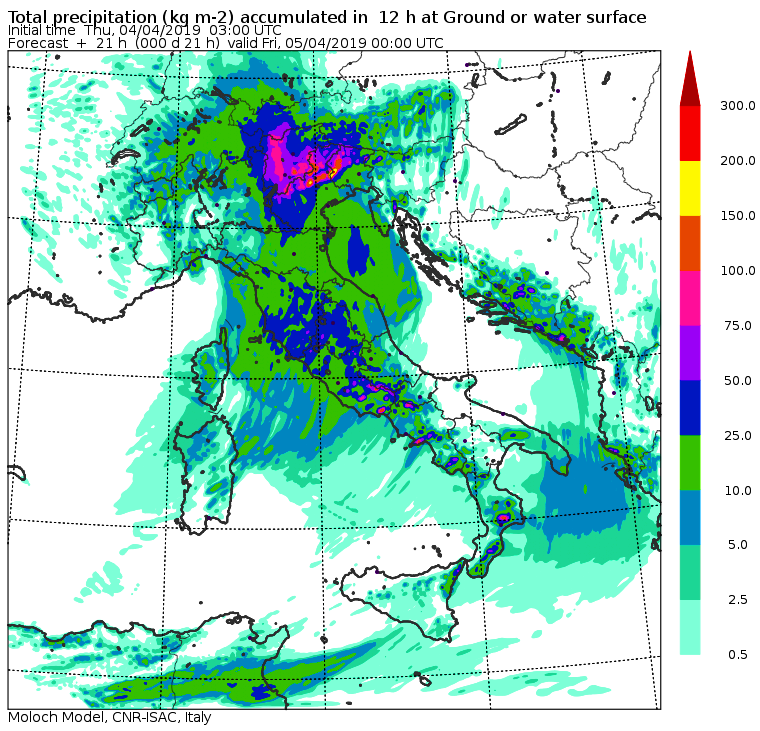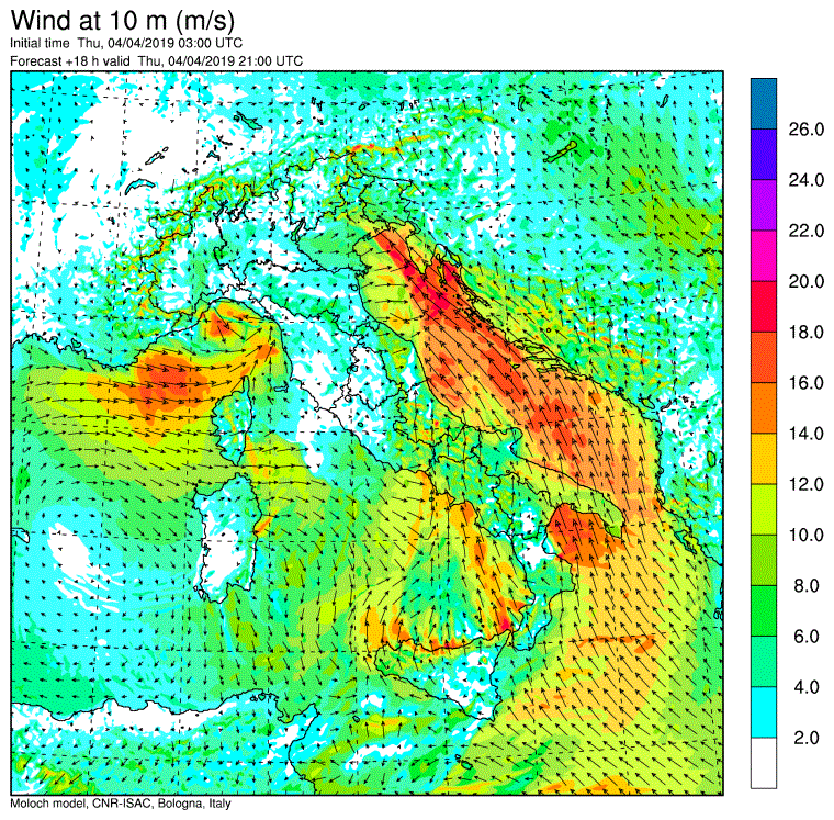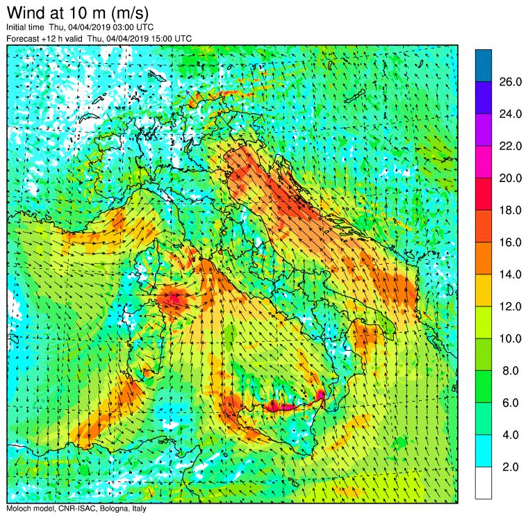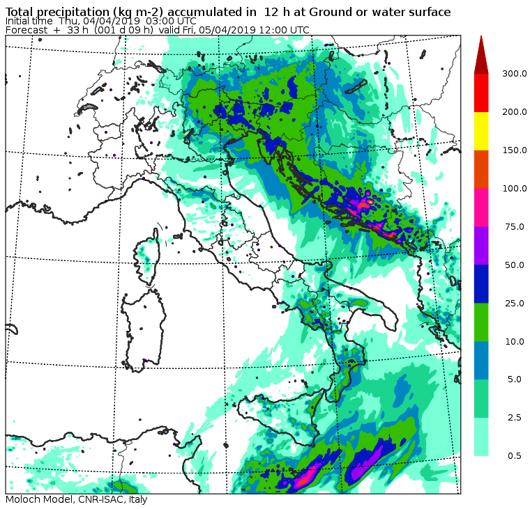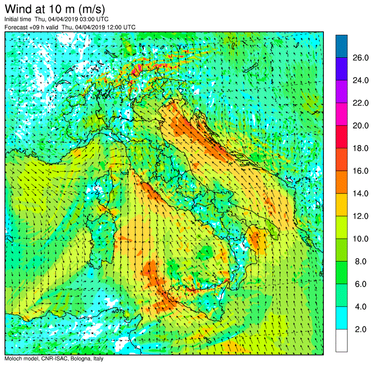 Allerta Meteo – La violenta ondata di maltempo ampiamente prevista nei giorni scorsi, è arrivata sull’Italia e sta provocando piogge torrenziali al Nord e nelle Regioni tirreniche, e abbondanti nevicate sulle Alpi. Al Centro/Sud soffia un vento di scirocco particolarmente intenso (a Termini Imerese ha raggiunto gli 87km/h) con temperature elevate (spiccano i +20°C di Palermo e Barletta). Ma il “clou” di questa tempesta primaverile deve ancora iniziare, come possiamo osservare dalle mappe del modello Moloch elaborato dall’ISAC-CNR che pubblichiamo nella gallery scorrevole in alto a corredo dell’articolo.
