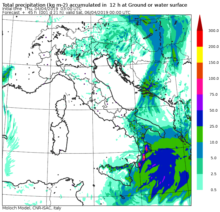 Ma attenzione proprio al Sud dove domani, Venerdì 5 Aprile, si formerà un violento ciclone sul mar Jonio che alimenterà maltempo estremo in Puglia, Basilicata, Calabria e Sicilia. Nelle zone joniche della Calabria cadranno oltre 200mm di pioggia, soprattutto nel catanzarese, dov’è alto il rischio di alluvioni lampo.