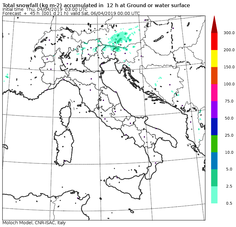 Le mappe mostrano in modo molto chiaro ed esplicativo come le precipitazioni più forti e abbondanti colpiranno il Nord soltanto nel pomeriggio/sera di oggi, quando grandi nevicate (oltre un metro di neve fresca!) colpiranno il Trentino Alto Adige, il Veneto e il Friuli Venezia Giulia, dove il maltempo proseguirà anche domani. Forti piogge anche su Toscana, Umbria, Lazio e Campania, e nelle zone joniche del Sud, soprattutto in Calabria, per lo “stau” provocato dallo scirocco.