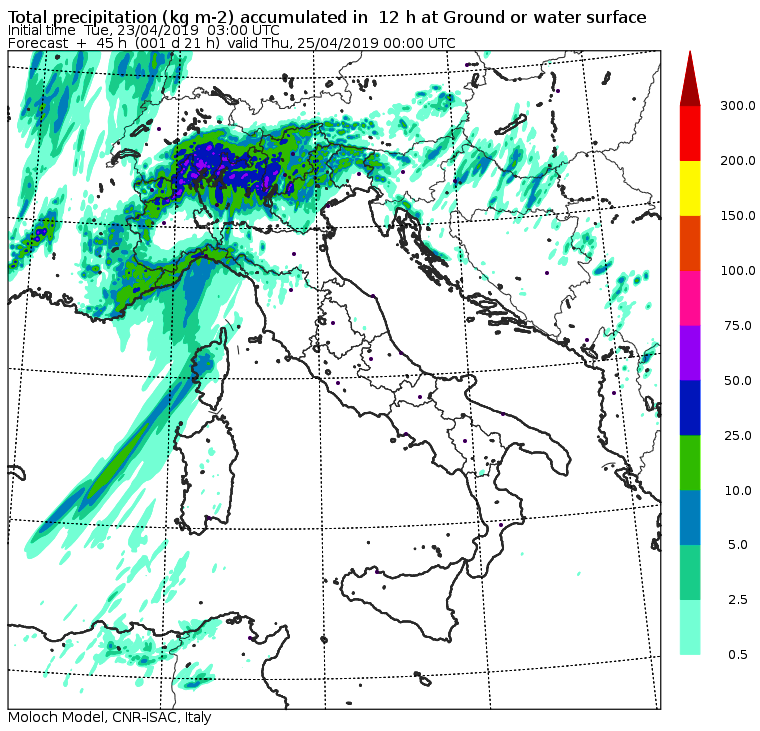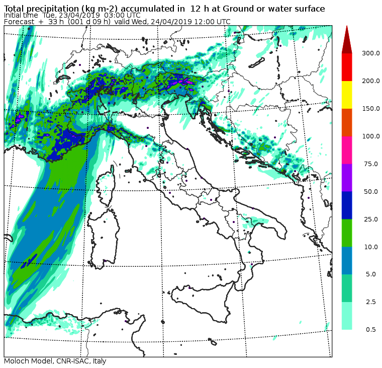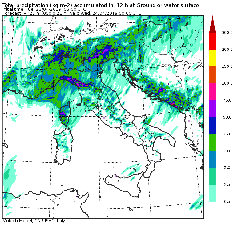 Nel pomeriggio/sera il maltempo si intensificherà su tutto il Nord e in alcune zone del Centro, con piogge torrenziali fino a stasera su tutta la Liguria, nell’alta Toscana, su Alpi e Prealpi con picchi di oltre 100mm sulle Dolomiti, tra Veneto e Friuli Venezia Giulia, e nell’Appennino toscano. Le zone più colpite saranno al Nord/Est tra Belluno e Pordenone, al Centro/Nord tra Genova e Firenze, come possiamo osservare nelle immagini del modello Moloch (Isac-Cnr) che pubblichiamo nella gallery a corredo dell’articolo.