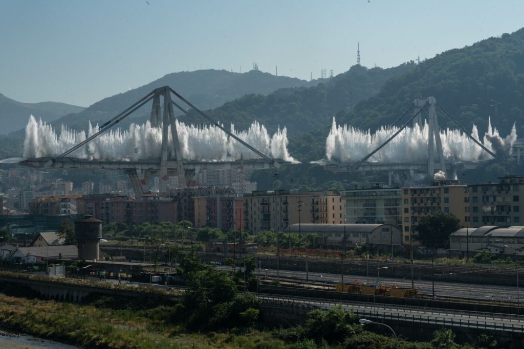 Ore 09:39 – Sono state demolite le pile 10 e 11 del ponte Morandi a Genova. Le operazioni di brillamento delle cariche esplosive sono durate 6 secondi.