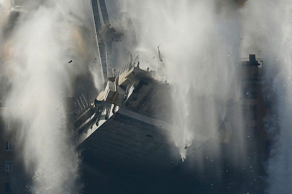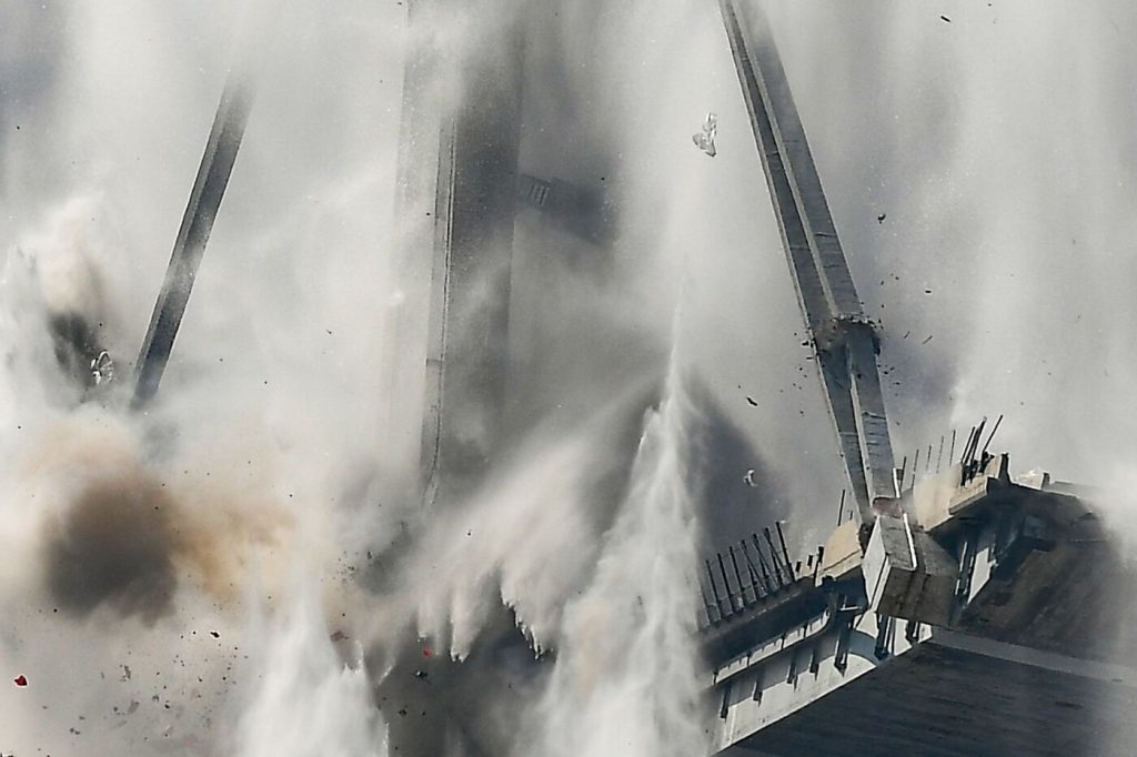 In pochi secondi 20mila i metri cubi di calcestruzzo e acciaio sono finiti a terra. Le due pile si sono piegate l’una verso l’altra e sono cadute in grossi pezzi.