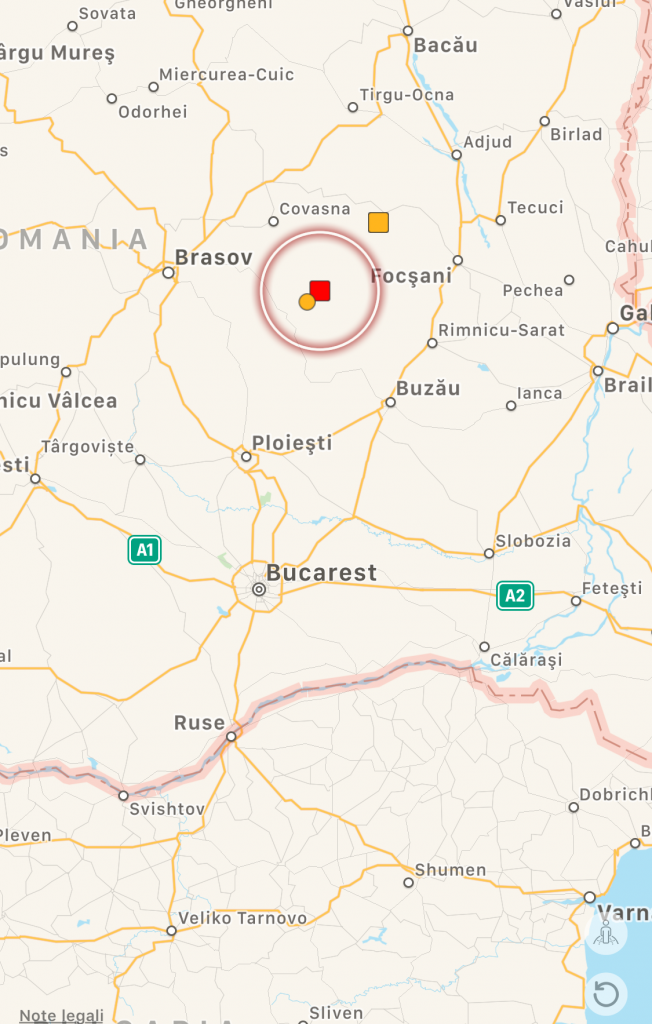 Oggi pomerigigo alle 16:46 (ora italiana), una scossa di terremoto di magnitudo 4.1 ha colpito l’area centro/orientale della Romania, con epicentro tra le città di Brasov, Foc?ani, Buz?u e Ploie?ti, pochi chilometri a nord della capitale Bucarest, nell’area più densamente abitata del Paese. Al momento non vengono segnalati danni.