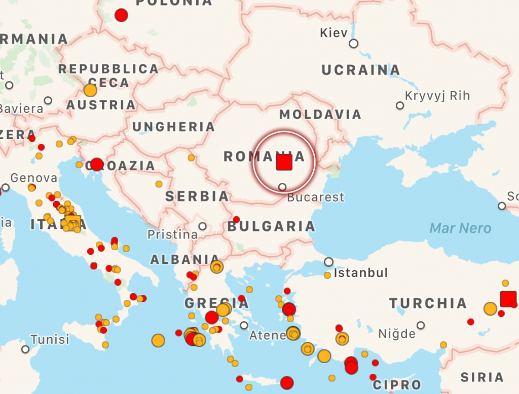 Un’altra forte scossa di terremoto ha colpito pochi minuti fa la Romania: la scossa s’è verificata alle 13:52 di oggi ed è stata di magnitudo 4.6. Pochi giorni fa, Venerdì 30 Agosto, un’altra scossa di magnitudo 4.5 aveva colpito la stessa area: siamo nel cuore della Transilvania, pochi chilometri a nord della capitale Bucarest, tra le città di Bra?ov, Buz?u e Foc?ani dove la gente impaurita s’è riversata in strada.