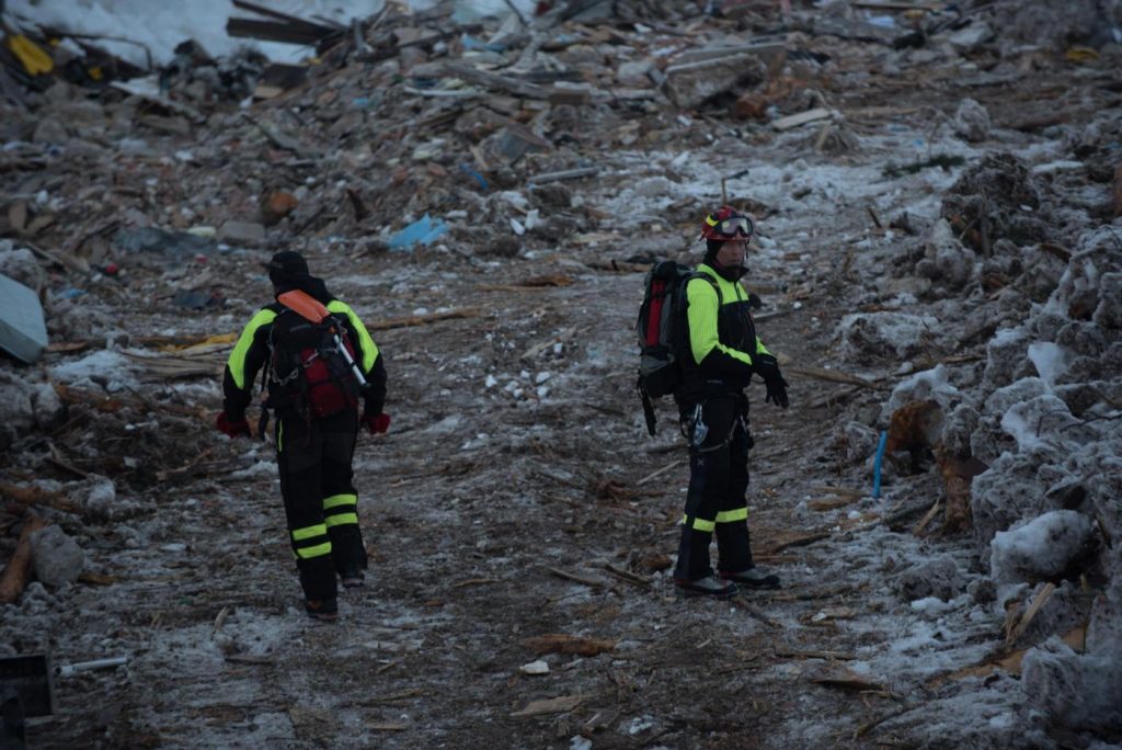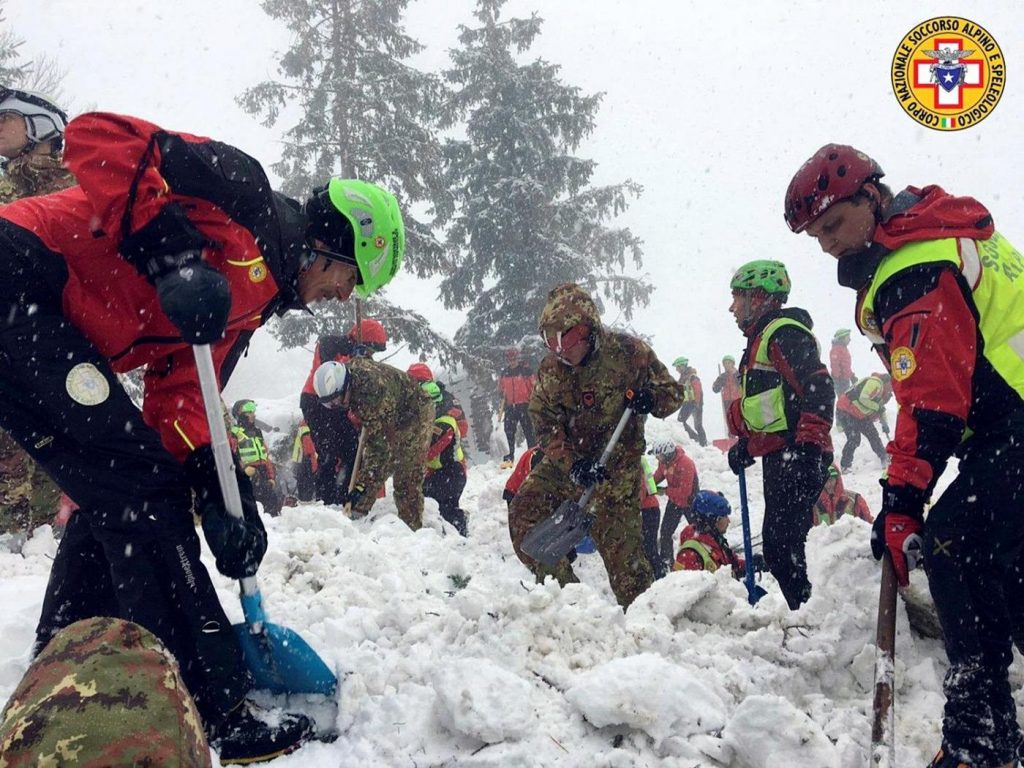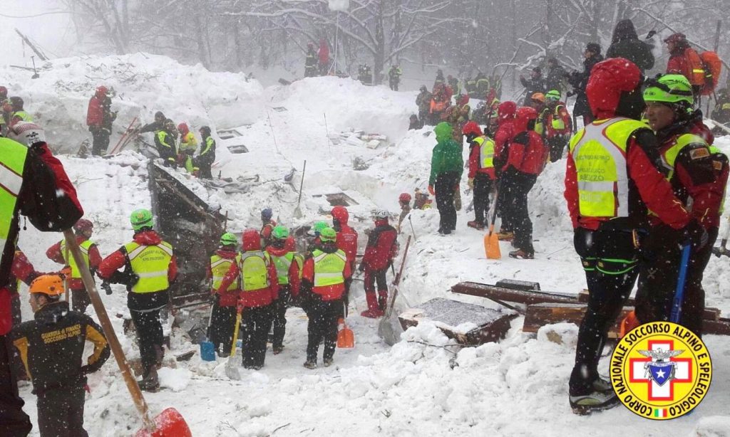 “Al momento tutti i telefoni risultano muti, compresi i cellulari – scrivevamo proprio su queste stesse pagine -. Una tormenta di neve sta rallentando la marcia dei soccorsi verso l’hotel Rigopiano. Persino il “gatto delle nevi” dei vigili del fuoco sta incontrando difficoltà e gli unici mezzi che stanno procedendo verso l’hotel sono le turbine dei pompieri. I soccorsi – come riferisce Roberto Cutraci, consigliere comunale di Farindola – sono partiti un paio di ore fa da Pescara e da Penne: in movimento ci sono gli uomini del soccorso alpino e dei carabinieri, partiti da Penne, quelli dei vigili del fuoco, partiti da Pescara. La distanza da percorrere, in una situazione resa molto difficile dalla neve, è di 45 km da Pescara a Farindola e di altri 9 km da Farindola fino alla frazione di Rigopiano. Non è quindi escluso che ci vogliano altre 2 o 3 ore perché i soccorsi arrivino sul posto”.