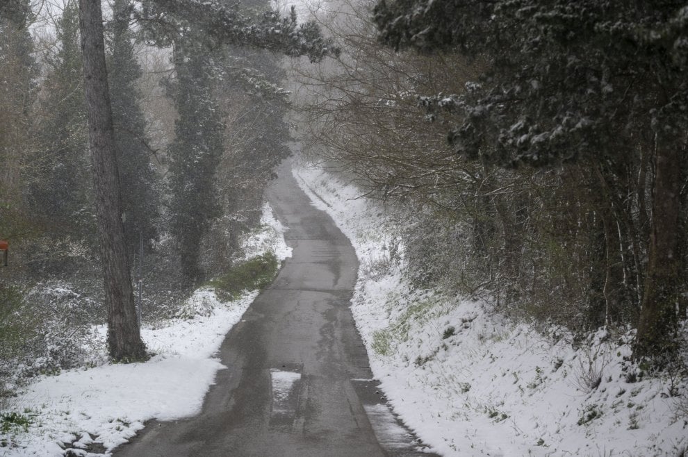 In Toscana, non nevica solo sui passi appenninici. La neve è scesa ad imbiancare anche le colline intorno a Firenze. Anche sul capoluogo toscano per qualche minuto è caduto qualche fiocco misto ad acqua. Un inizio primavera shock per l’Italia e soprattutto per la Toscana, che oltre al coronavirus, deve fronteggiare l’emergenza di freddo e neve. La neve si è posata sui tetti e nelle strade delle colline intorno a Firenze e nel Mugello. Nella gallery scorrevole in alto e nei video in fondo, le immagini più suggestive dalle colline intorno a Firenze.