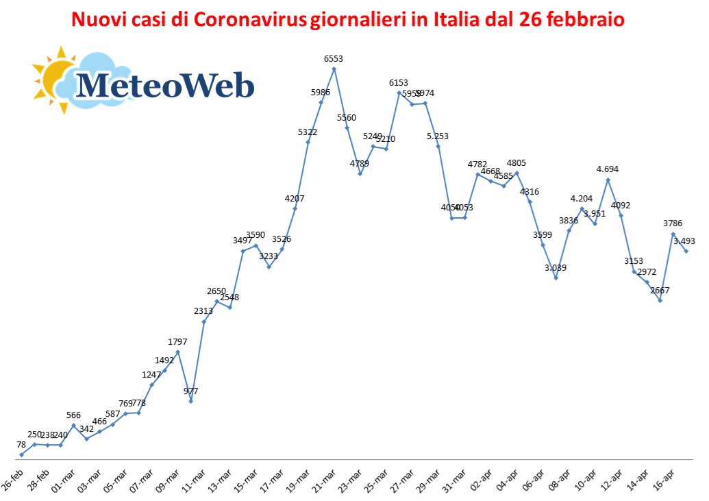 Eloquente il grafico con l’andamento del dato dei nuovi contagi giornalieri in Italia dal 26 Febbraio:
