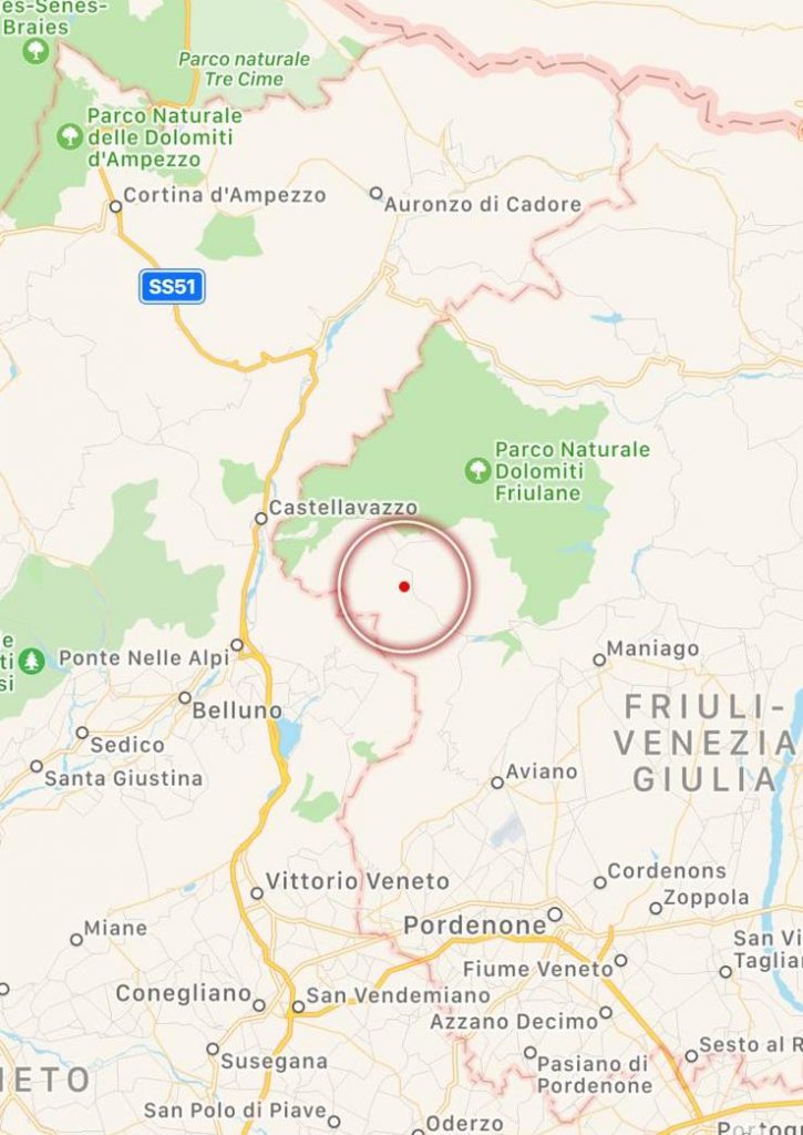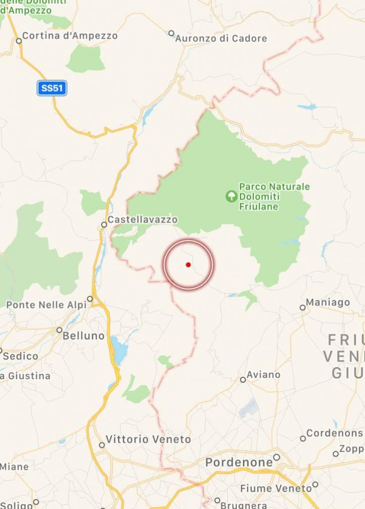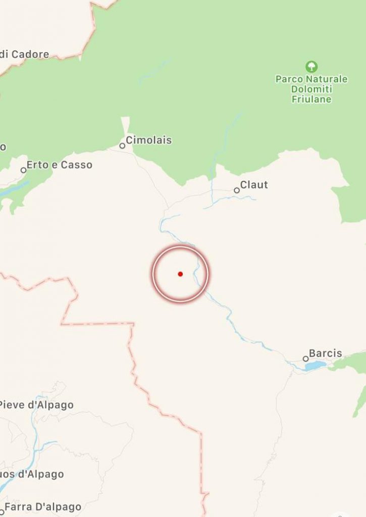 Una scossa di terremoto è stata avvertita in Veneto e Friuli Venezia Giulia pochi minuti fa, alle 17:10 di oggi pomeriggio. Il terremoto si è verificato tra Belluno e Pordenone: magnitudo 2.9 a 10.4km di profondità con epicentro tra Barcis e Claut.
