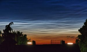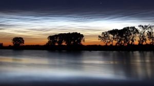 Le nubi nottilucenti, a volte chiamate nuvole blu elettrico a causa del loro colore, sono un tipo di nubi visibile ad occhio nudo solo per poche settimane all’anno intorno al solstizio d’estate, quando le condizioni meteorologiche e l’angolazione del sole sono ideali. Queste nuvole si formano a circa 80km dalla superficie terrestre, nella mesosfera, molto più in alto rispetto alle nuvole normali, che si formano quasi tutte nei primi 15km dell’atmosfera. La temperatura nella mesosfera arriva a -143°C nella sua parte più alta. Le nubi nottilucenti sono composte da cristalli di ghiaccio molto piccoli, fino a 100nm di diametro. I cristalli di ghiaccio si formano su nuclei di condensazione, come micrometeoriti o scarichi di razzi, oppure possono formarsi direttamente dal vapore acqueo.